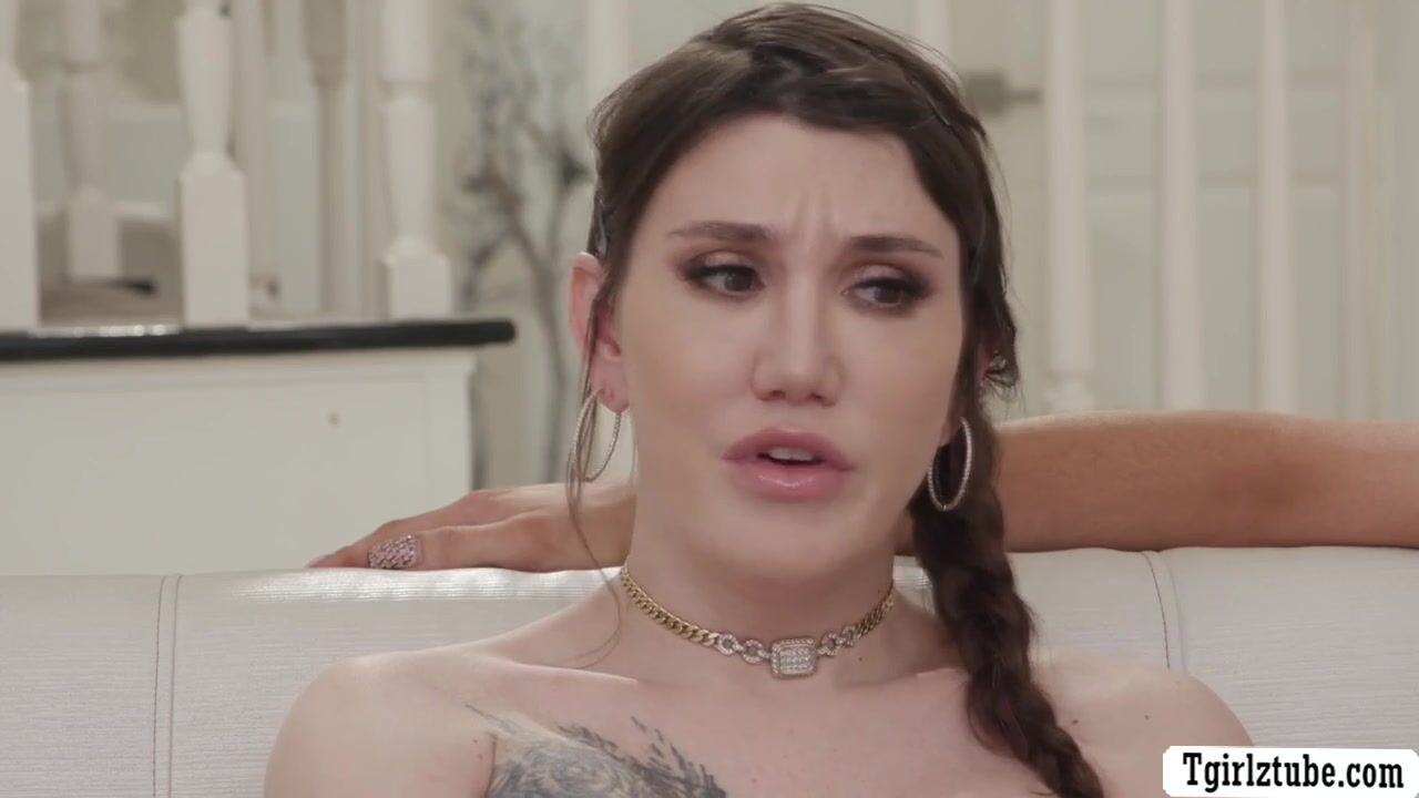 Slut busty shemales are sitting on the couch while watching shows.After that,their TS roommate arrives and they invite her to sit with them.Next is,they get horny and start sucking each others shecock before they fuck their wet asses.