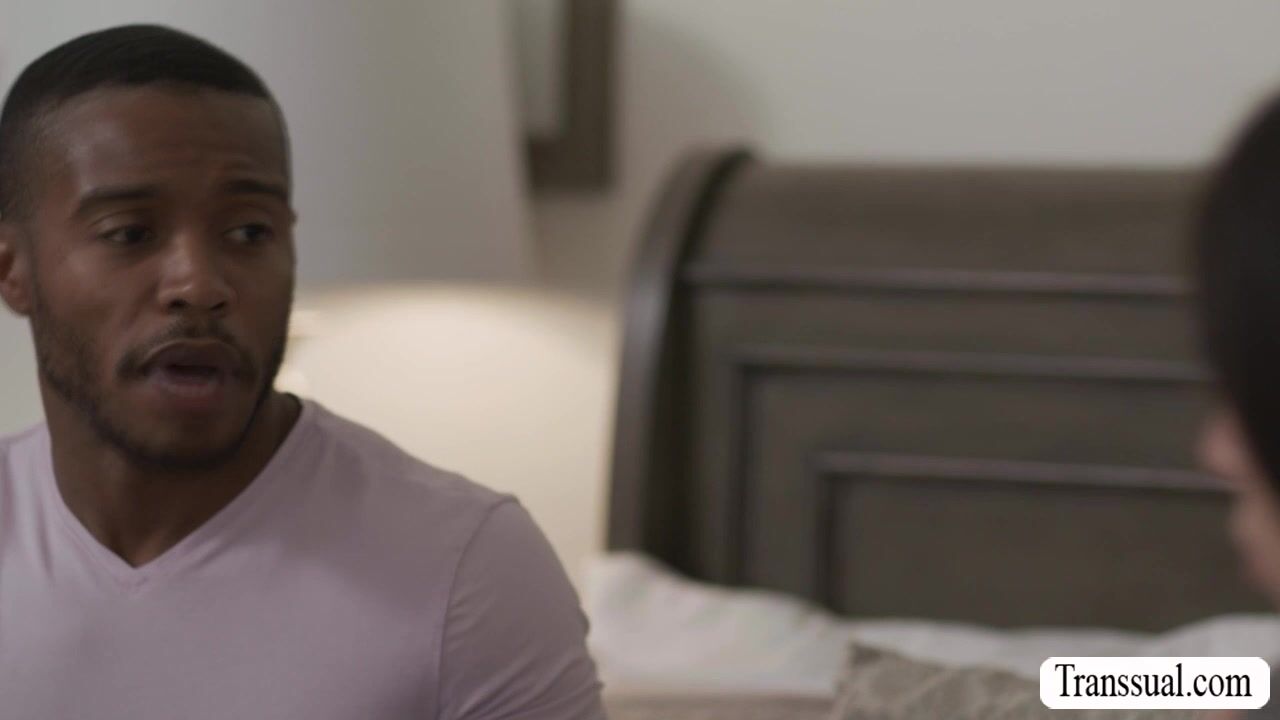 Stepbro goes to the room of his TS stepsister and they talk for a while.After that,they get horny and start kissing each other.Next is,he lets her throat his hard big black cock passionately and in return,he fucks her tight ass so deep and hard.