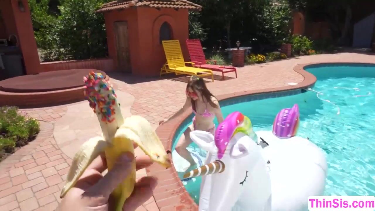 Stepbro brings his petite teen stepsister banana and he then brings her into his room.He lets her throat his hard big cock passionately and in return,he fucks her tight wet pussy so deep and fucking hard.