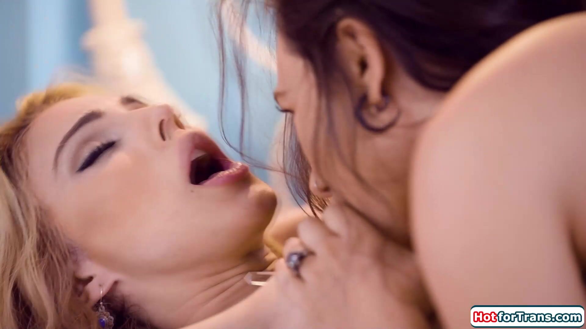 Big boobs tgirl Ariel Demure kisses small tits Sinn Sage after their workout.They suck tits and the milf sucks off the trans cock.The brunette facesits to get pussy licked by the busty shemale whos jerking her tranny dick.The ts bangs the petite babe