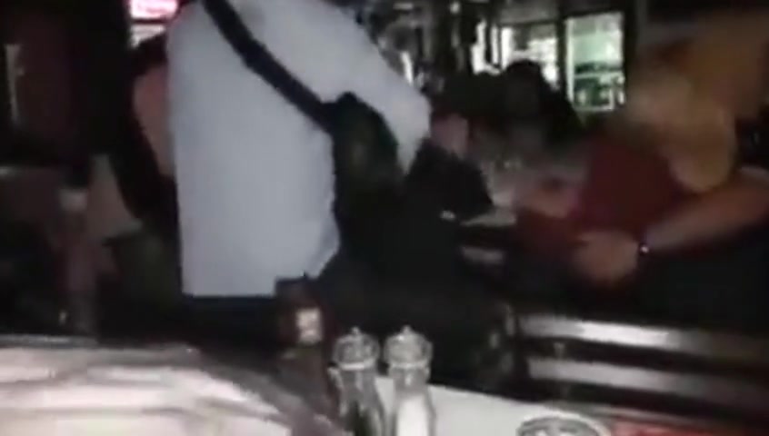 Description: Sucking it in the restaurant.