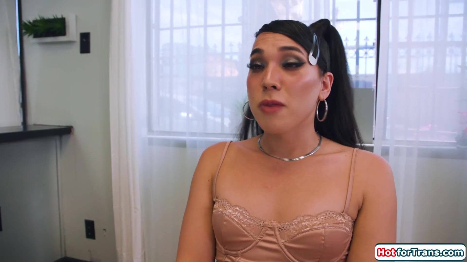 Small boobs asian trans Kasey Kei wants to get fucked by all the shemales at the speed dating event.The busty tgirls let her suck their tranny dicks and give her a rimjob.The petite ts is barebacked while giving a blowjob and anal rides on a cock