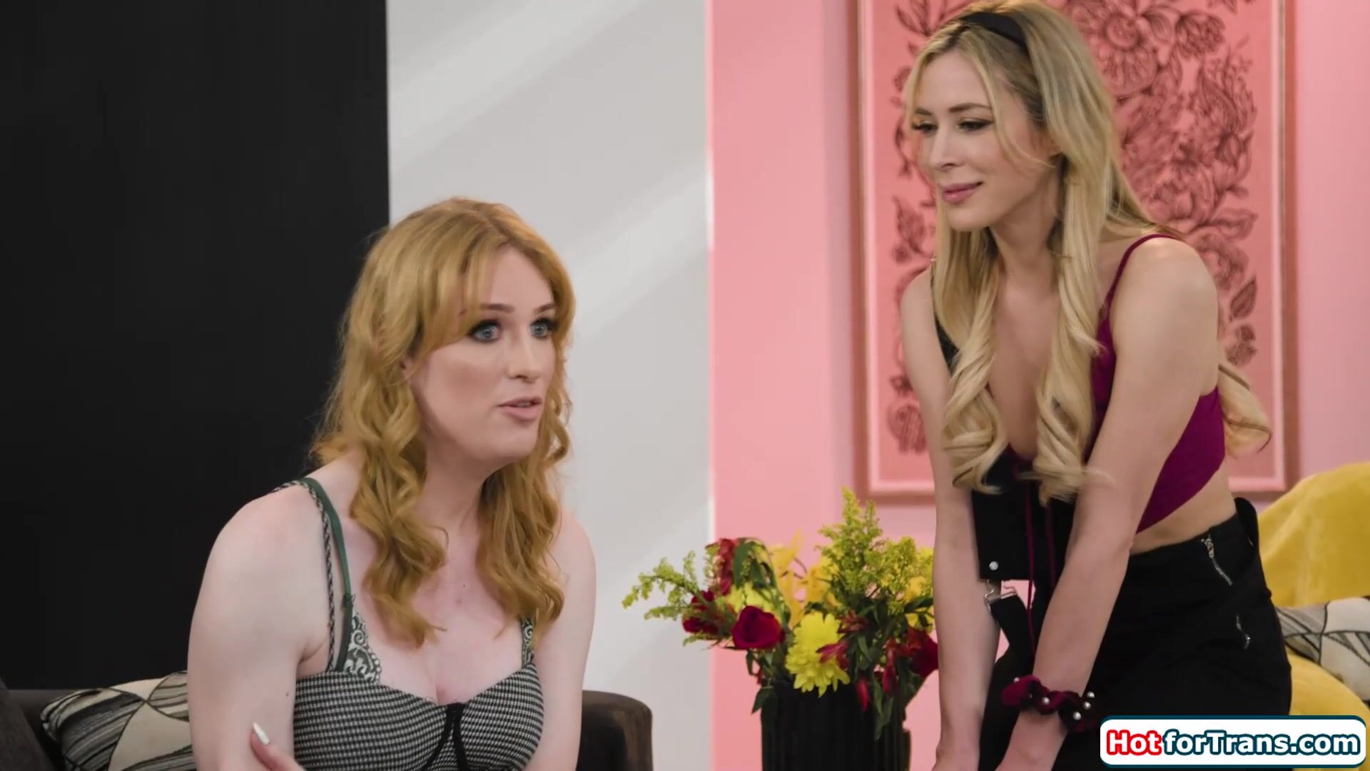 Busty redhead ts Erica Cherry confesses her feelings for her bff Aiden Ashley and the blonde kisses the tgirl.The big tits shemale gets her big tranny cock deepthroat and licks the small boobs babes shaved pussy.Aiden rides on the trans dick