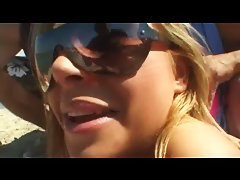 Two guys pick up a girl on the beach and invite her to their place. The fun girl sucks two cocks and let the men fuck her pussy and asshole. She enjoys being double penetrated. The chick gets al oad of cun on her beautiful tits.