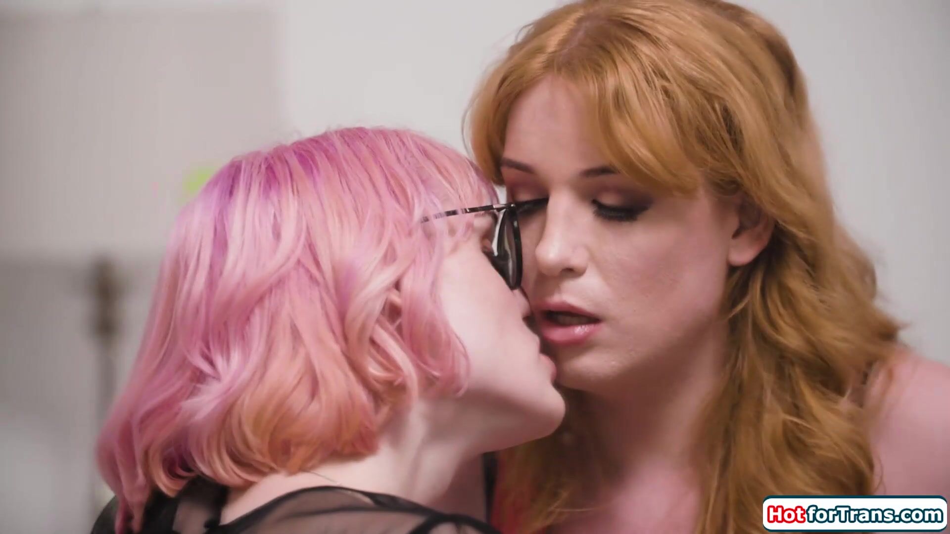 Tgirl couple ask for a couple of minutes to test the bed before buying.With the salesman gone the busty shemale gets her tranny dick sucked by her ts gf and gives her a blowjob.The big tits trans bareback anal fucks the small boobs transsexual