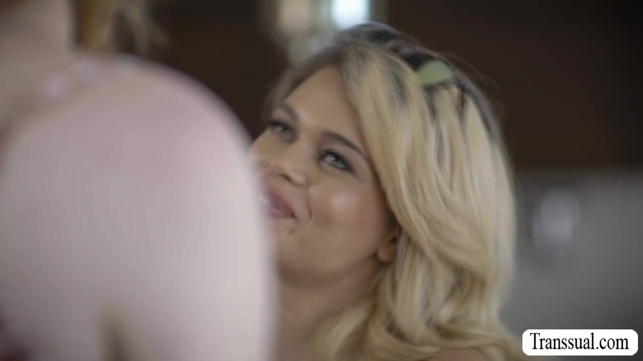 Gorgeous TS redhead Erica Cherry and blonde babe Destiny Cruz are on the couch kissing each other passionately.After that,Destiny throats Tgirl Ericas hard shecock and in return,she gets her pussy so wet and fucked so hard.