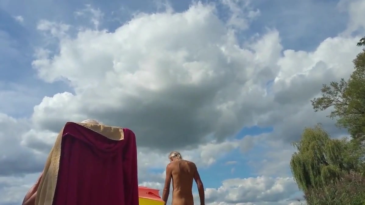 Nudist grandpa at the beach.
