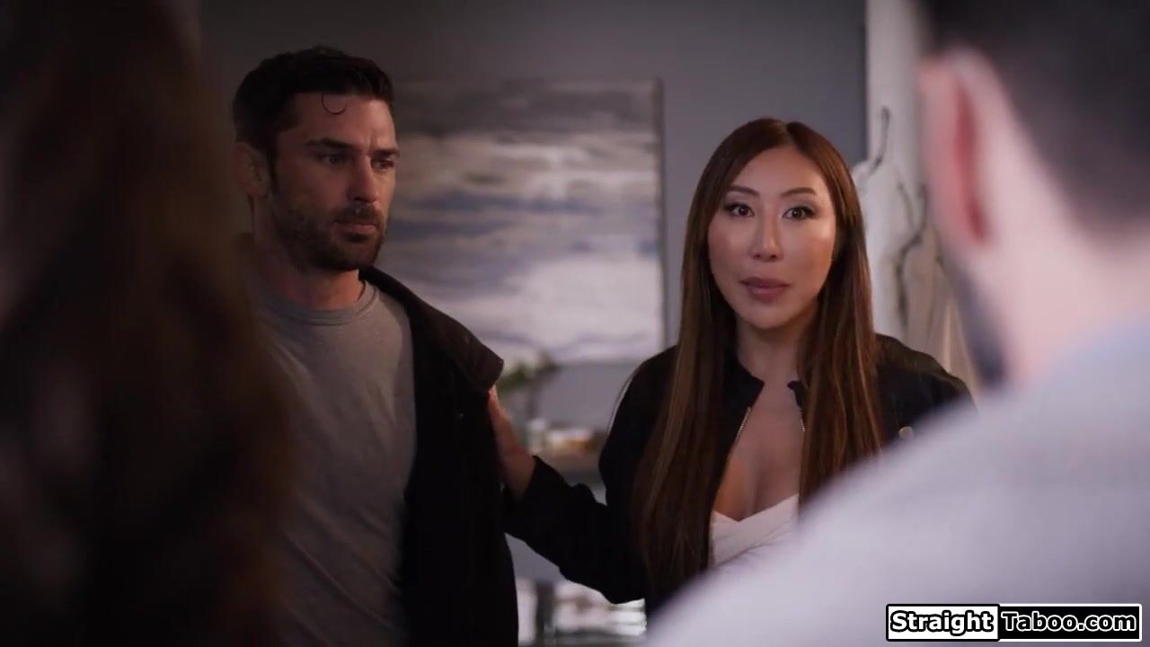 Asian milf catches husband cheating and gets back at him kissing a stranger.The busty brunette is deepthroat facefucked and the guy sucks her big tits.He rims her and fingers her shaved pussy while giving her oral sex.Then is fucked rough and squirts