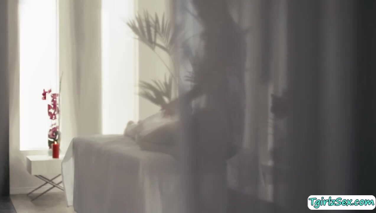 Sexy blonde transsexual Casey Kisses leads her smalltits tranny babe client Ella Hollywood in the massage table to relax then she oils her body sensually caresisng her ass. The gorgeous tbabe massages her big ass them gives asslicking rimjob before she fucks her ass.