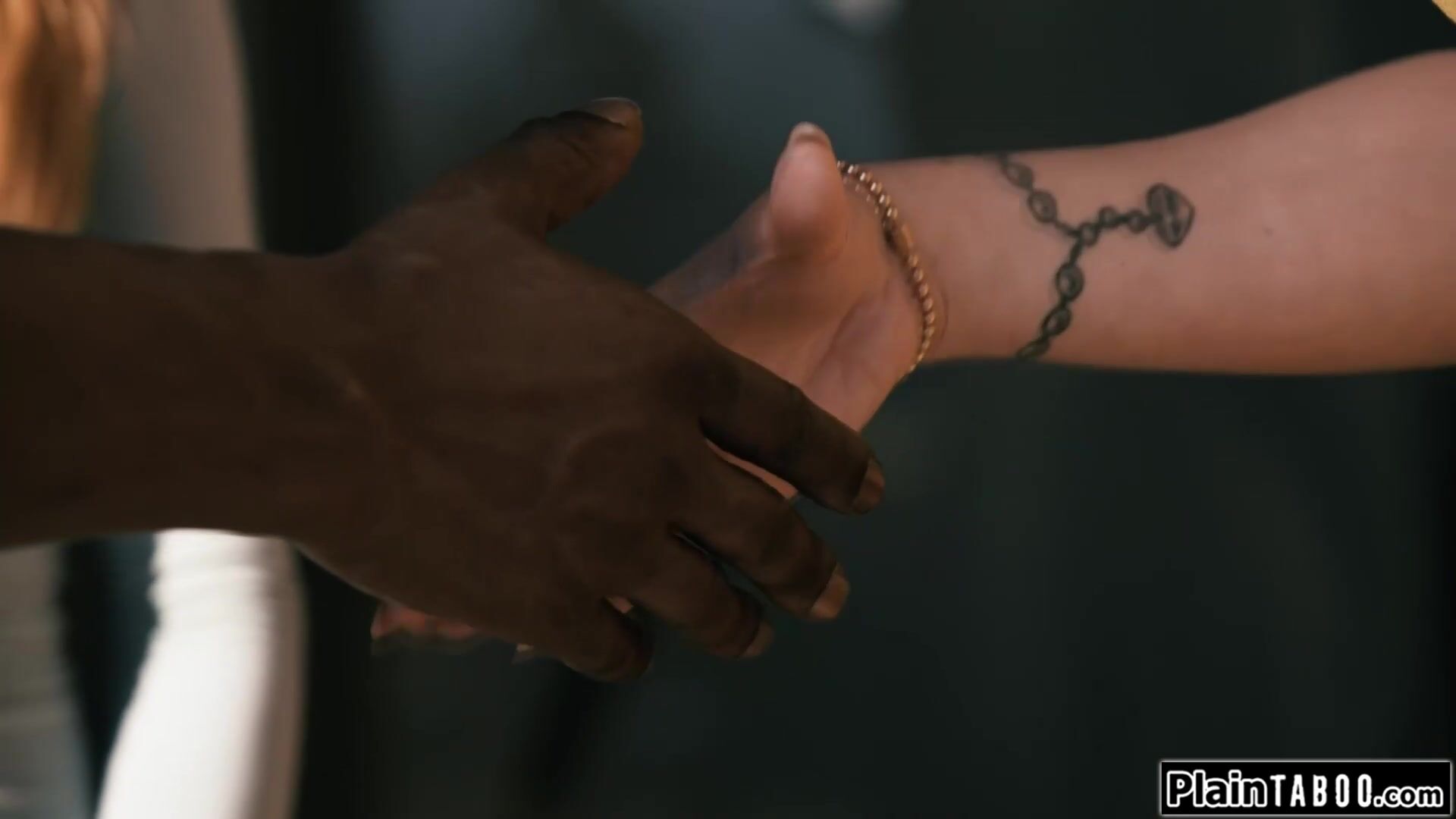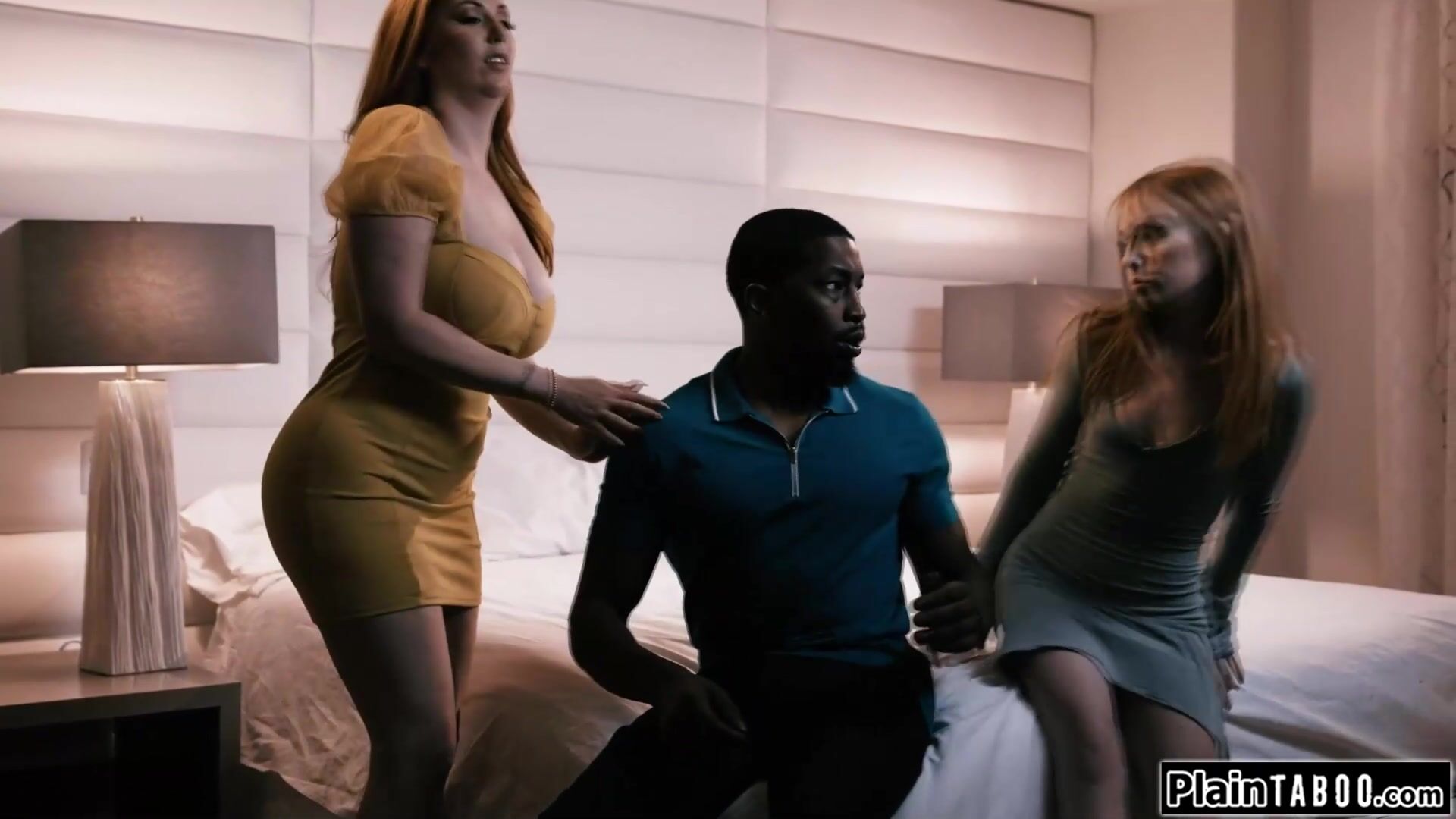 Black bf shared by small tits redhead gf and busty stepmom