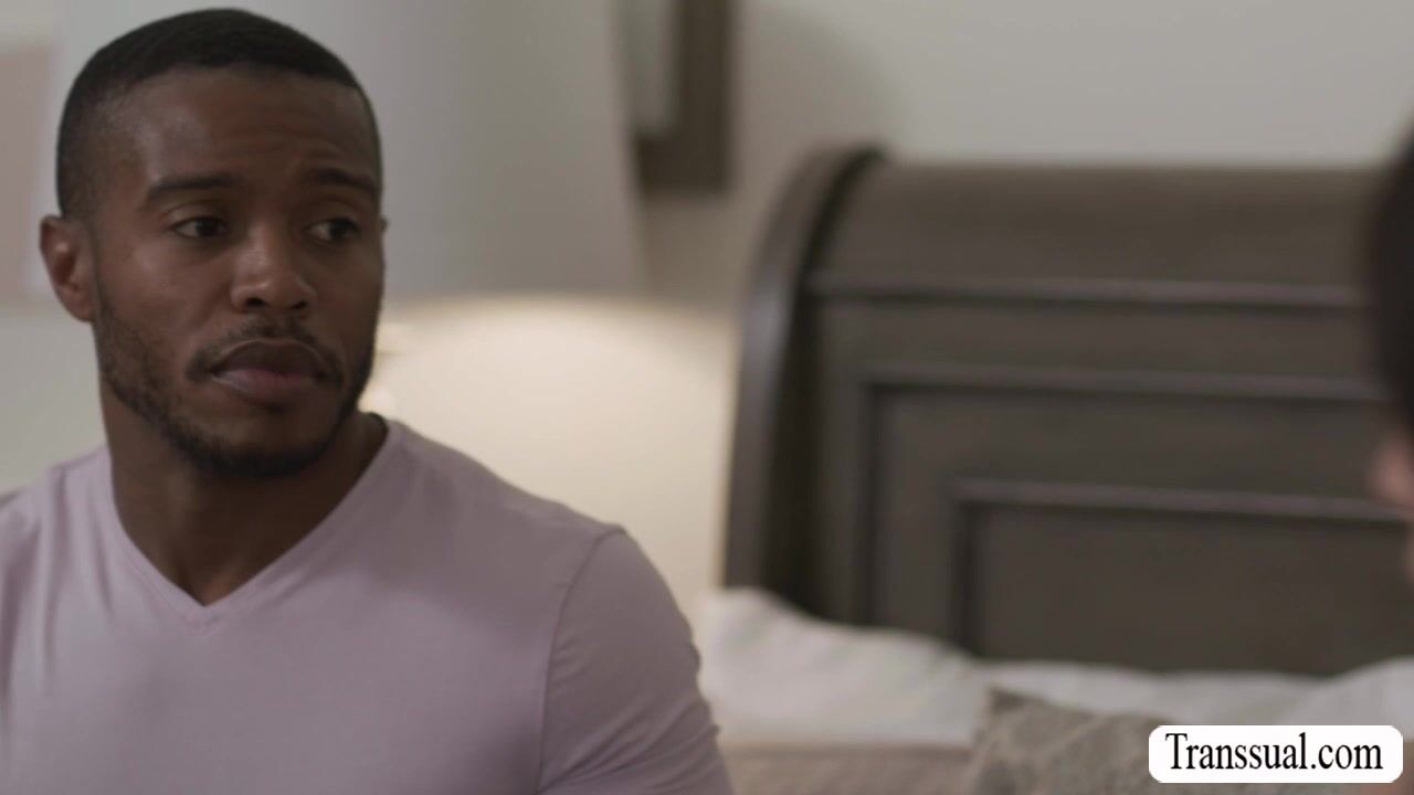 Chubby TS and her black stepbro are on the bed kissing each other.After that,she throats his big black cock passionately and in return,her stepbrother licks her ass first to makes it wet before he fucks it so deep and fucking hard.