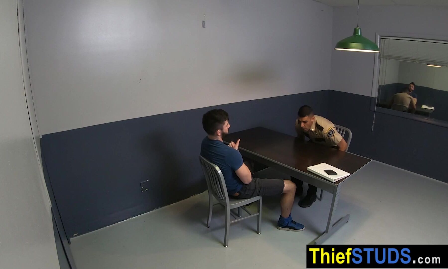 Gay latin guard Leo Silva arresting a suspect Scott Demarco and bringing him back to headquarters He attempts to bribe the Officer with money but he wants something else The teen has to suck his big tanned cock then he is anal fucking him bareback