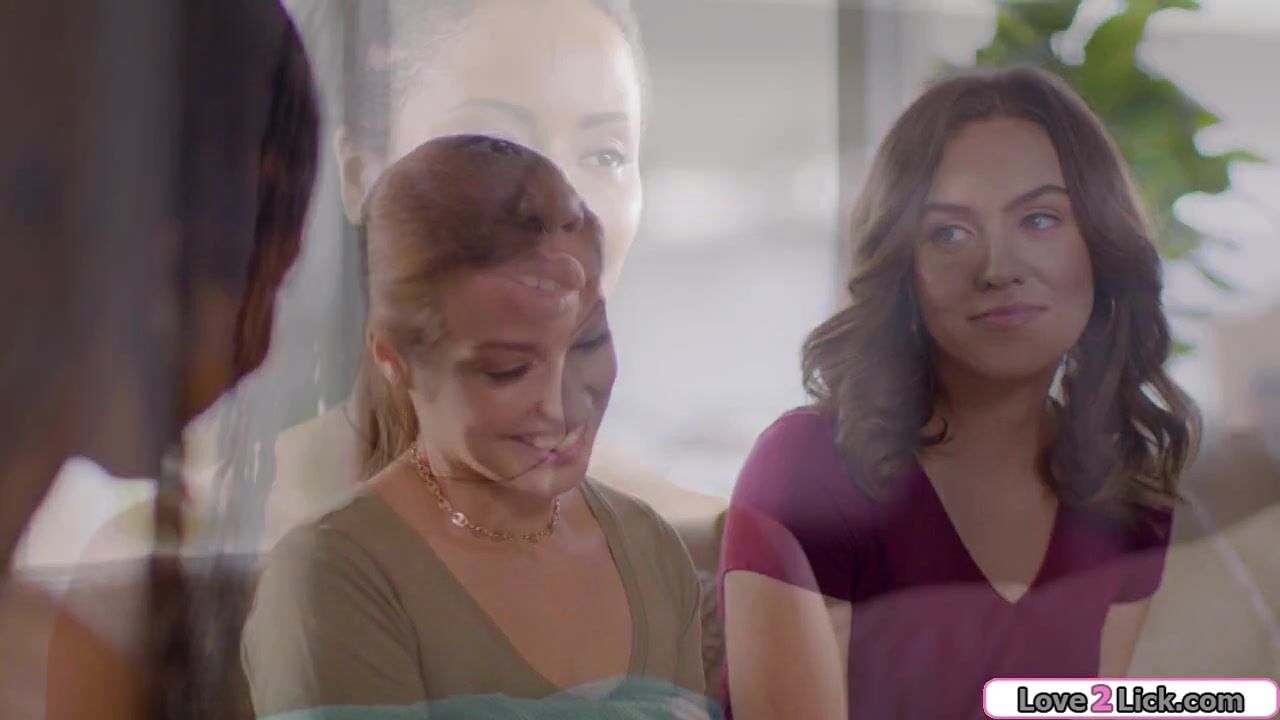 Ebony girl teaches brunette neighbors to lick pussy in 3some