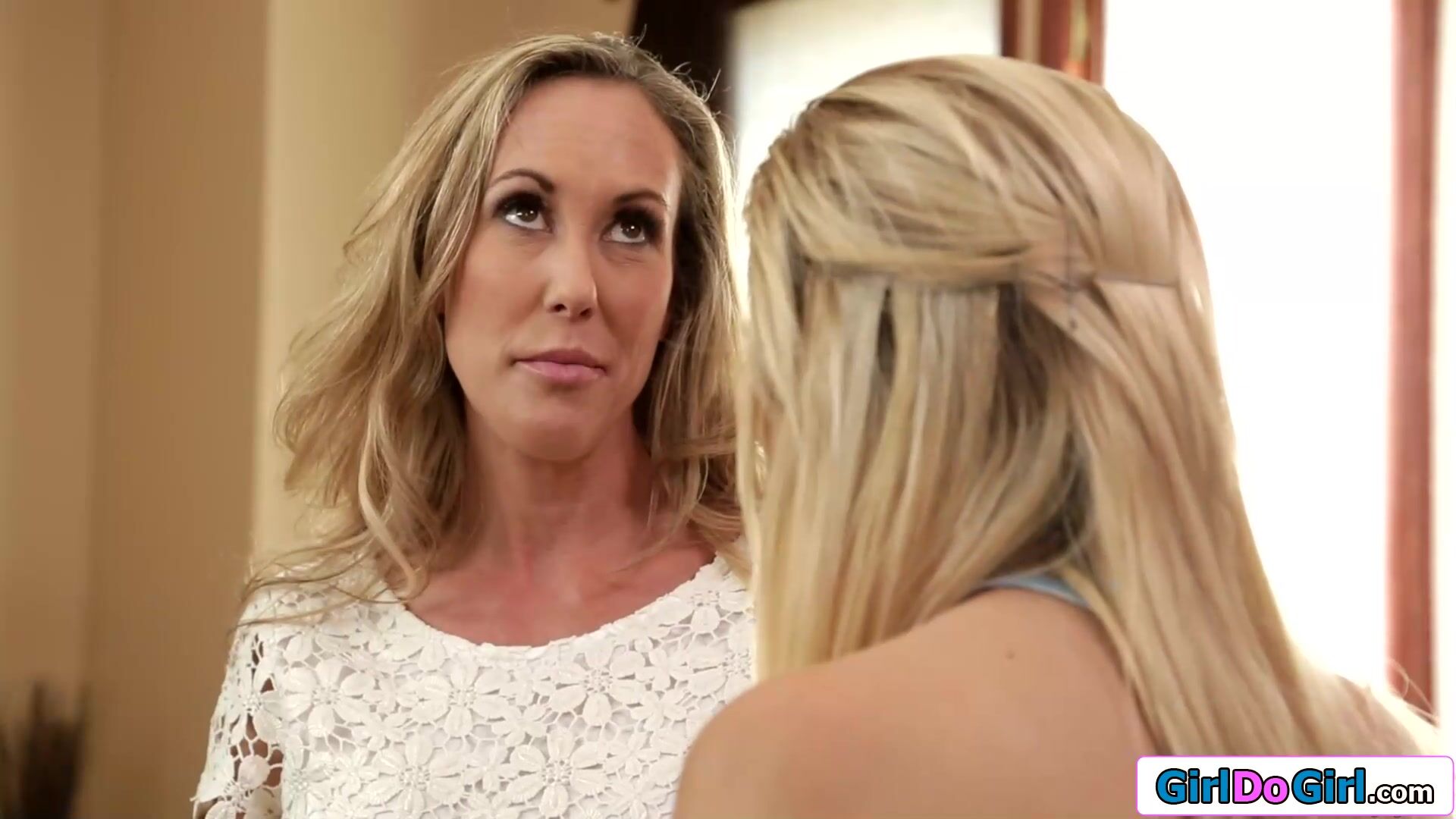 Stepdaughter confesses her crush on her busty stepmom by giving her a kiss.The big tits milf is surprised but kisses her back.The cougar takes off her bra to let the petite blonde suck her boobs before she licks her pussy and facesits her to get oral