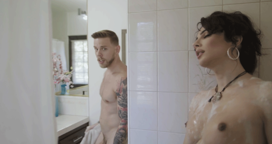 Tight TS babysitter Ariel Demure takes a shower and her horny boss is watching her getting naked.After that,her boss cant resist and he then rips off her jean and start fucking her tight wet asshole so deep and hard.