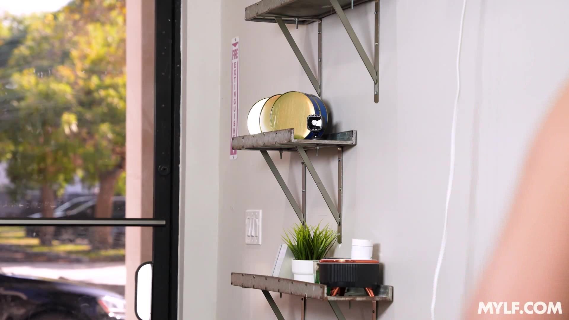 Sneaking sex with big tits MILF hairdresser in barbershop