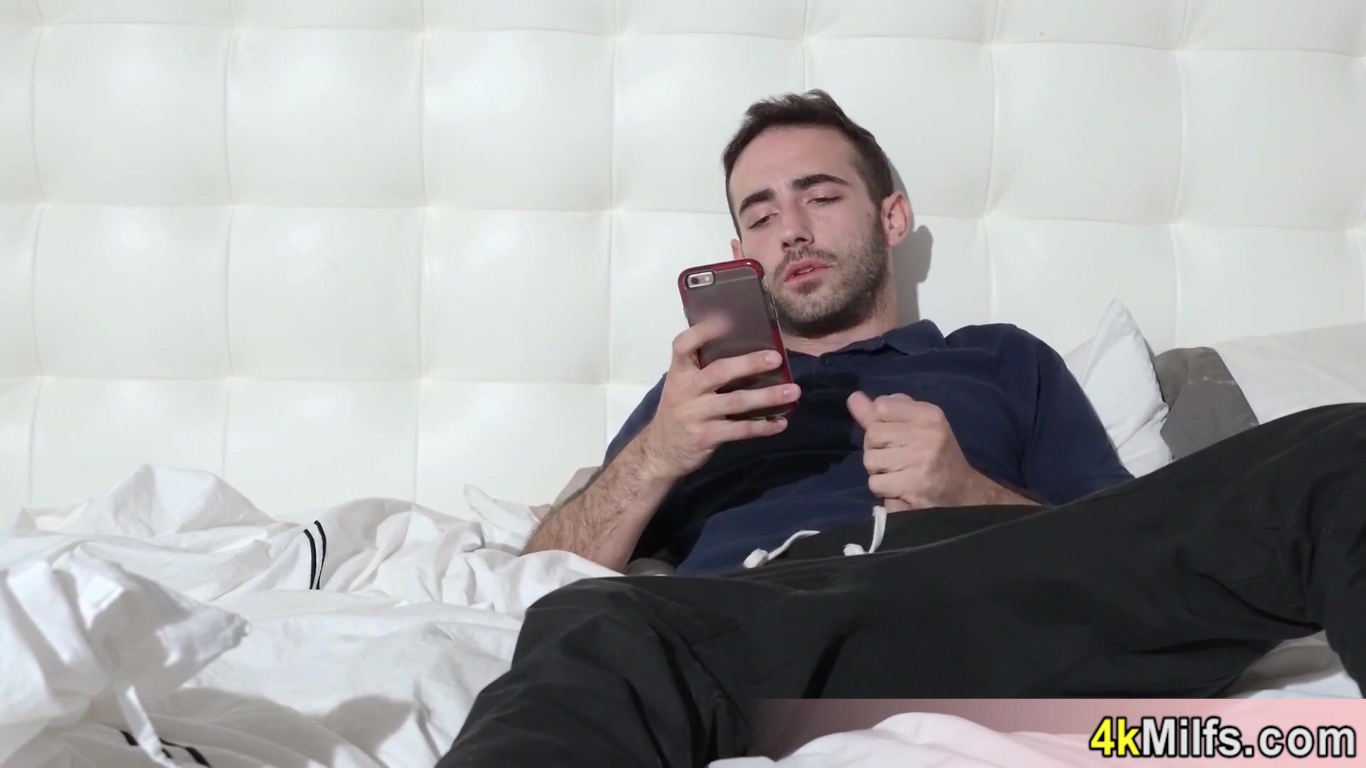 Blonde MILF stepmom Cherie Deville with big boobs catches her masturbating stepson what makes her horny sop she starts twerking then she takes his big cock and after a blowjob the guy is fucking her in the ass