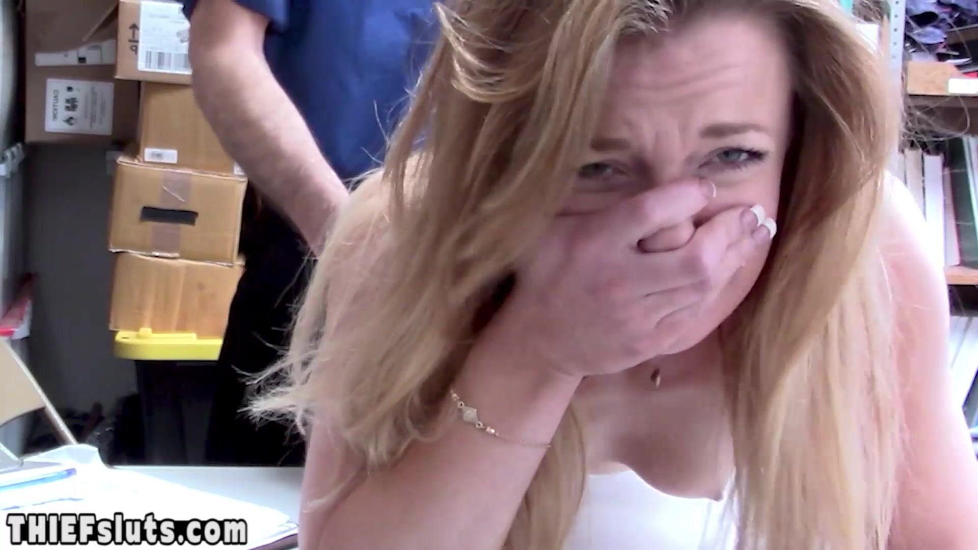 Hot blonde teen thief Kate Kenzi with perfect natural tits has to satisfy a perv security guards big cock after the interrogation to avoid jail So she is giving him a blowjob then lets him to fuck her shaved pussy in his office