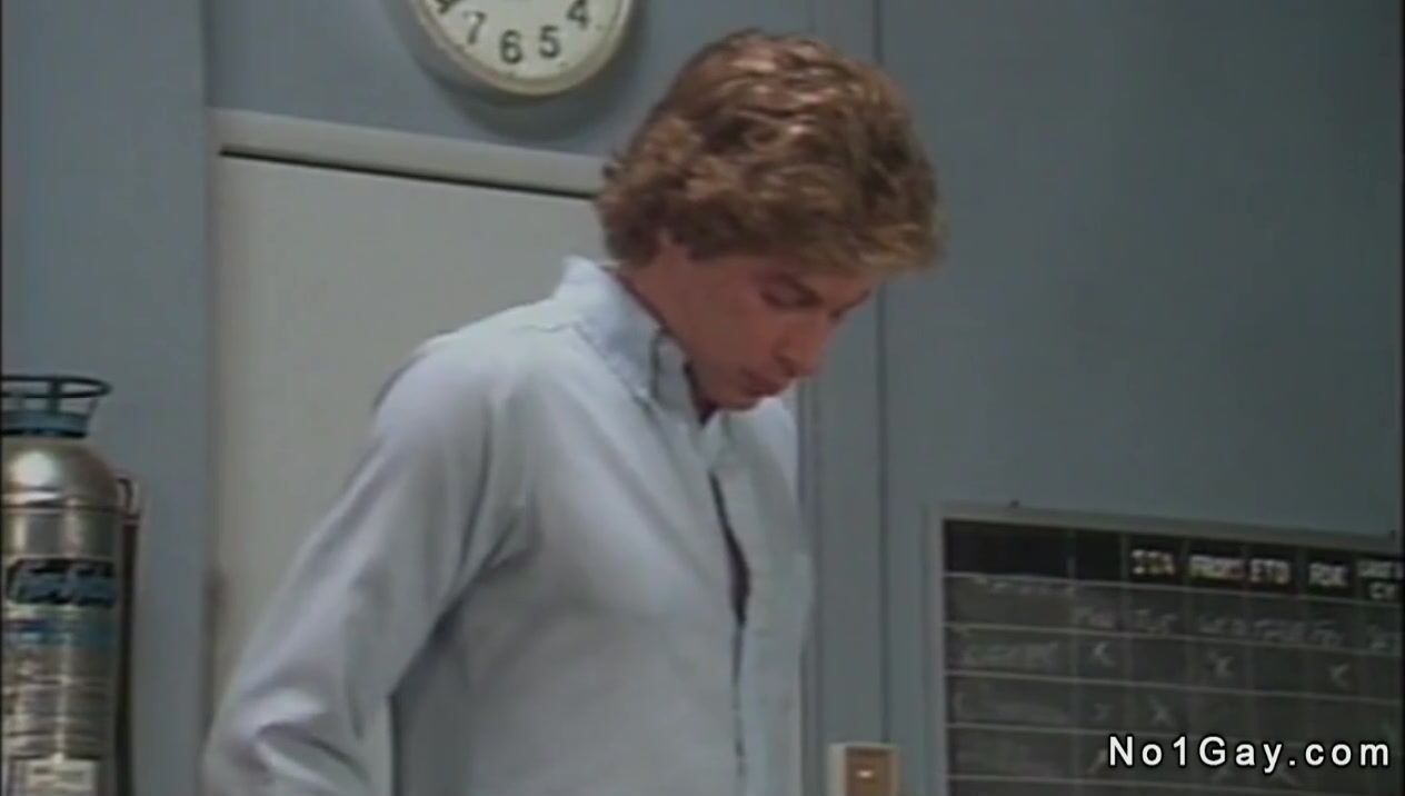 Once the land Melchor needs to found his lagguage and there blonde gay Leigh Erickson fucks him in mouth with big dick then anal fucks and toys him till cums on his face