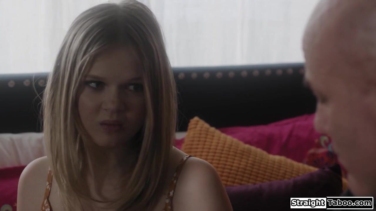 Stepdad makes teen stepdaughter wear a chastity belt and the horny blonde asks him to take it off.The older man kisses her as he plays with her small tits.He licks her shaved pussy and the babe deepthroats his big cock.Then the petite girl is fucked