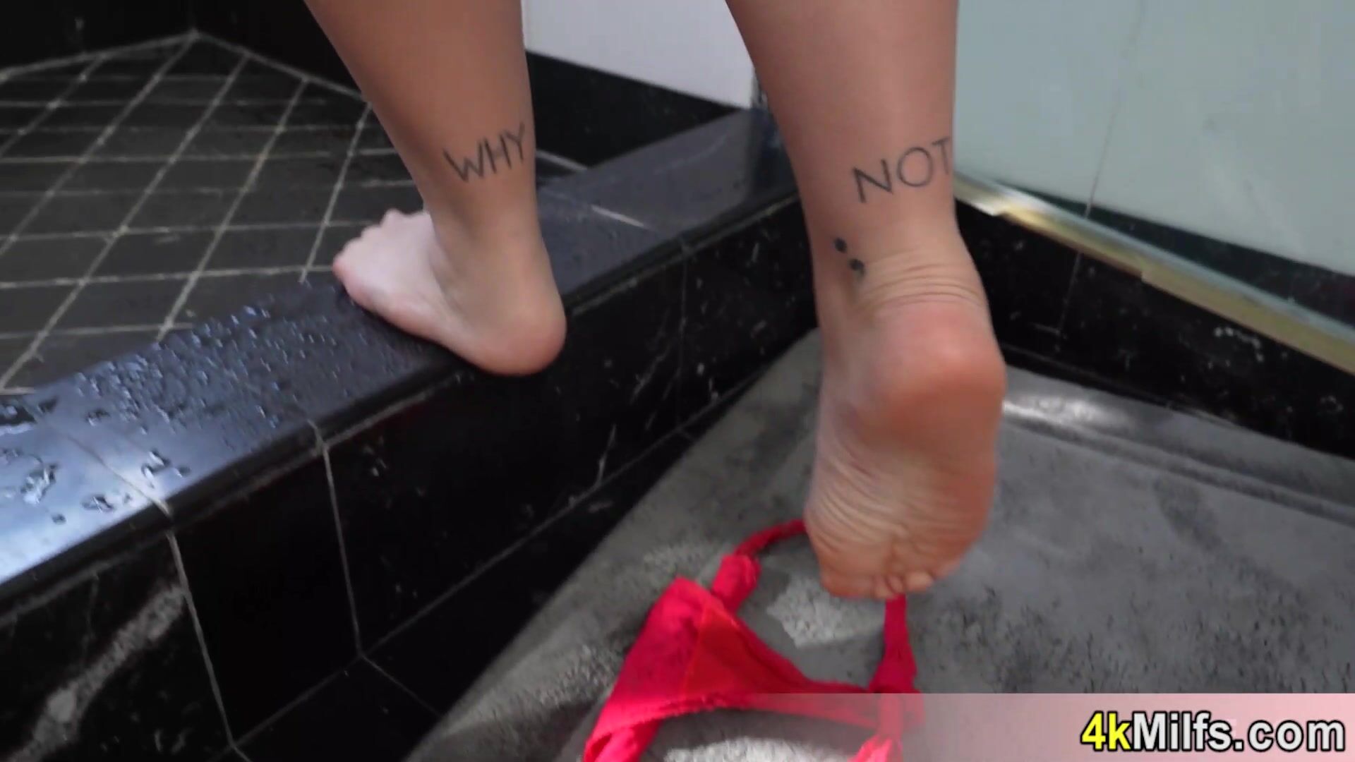 Description: Stunning redhead BBW MILF Chloe Cooper with big natural tits takes a sensual shower playing with her boobs and juicy ass before her big cocked lover joins to her and he is fucking her shaved pussy