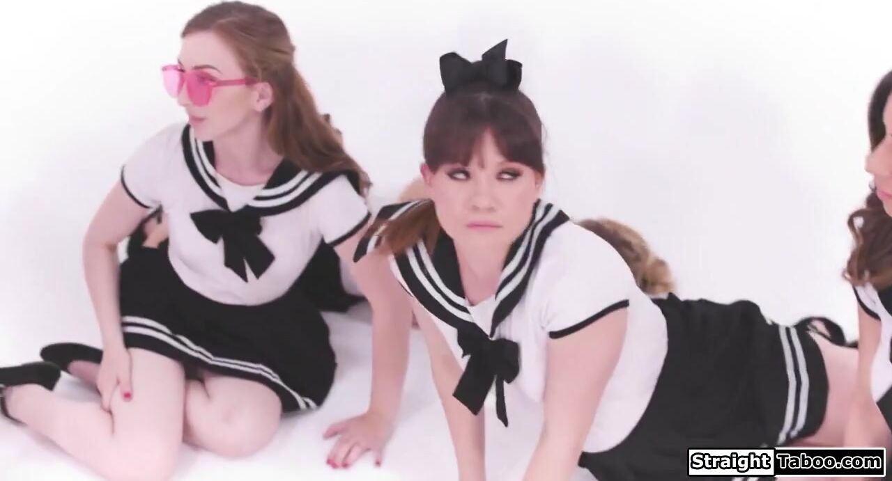 Bus driver has a virtual reality orgy with 5 teen students.A petite brunette is deepthroat facefucked and the older guy bangs the small tits blonde as an uniformed babe gives oral sex to a big tits girl.He fucks her rough and licks her shaved pussy