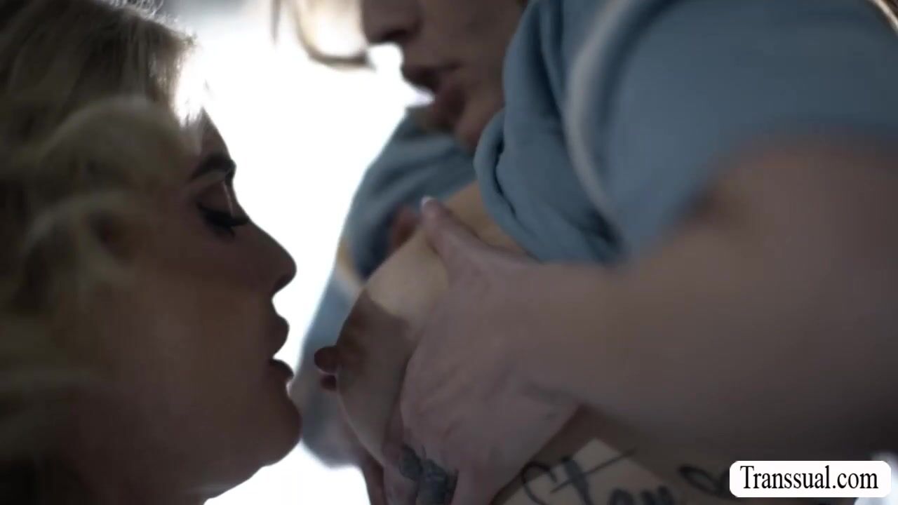 Tattooed teen seduces her shemale stepmom to fuck her wet pussy.First,they start kissing each other first and next is,she throats her hard shecock passionately.In return,her stepmom lick her pussy before she fucks it so deep and hard.