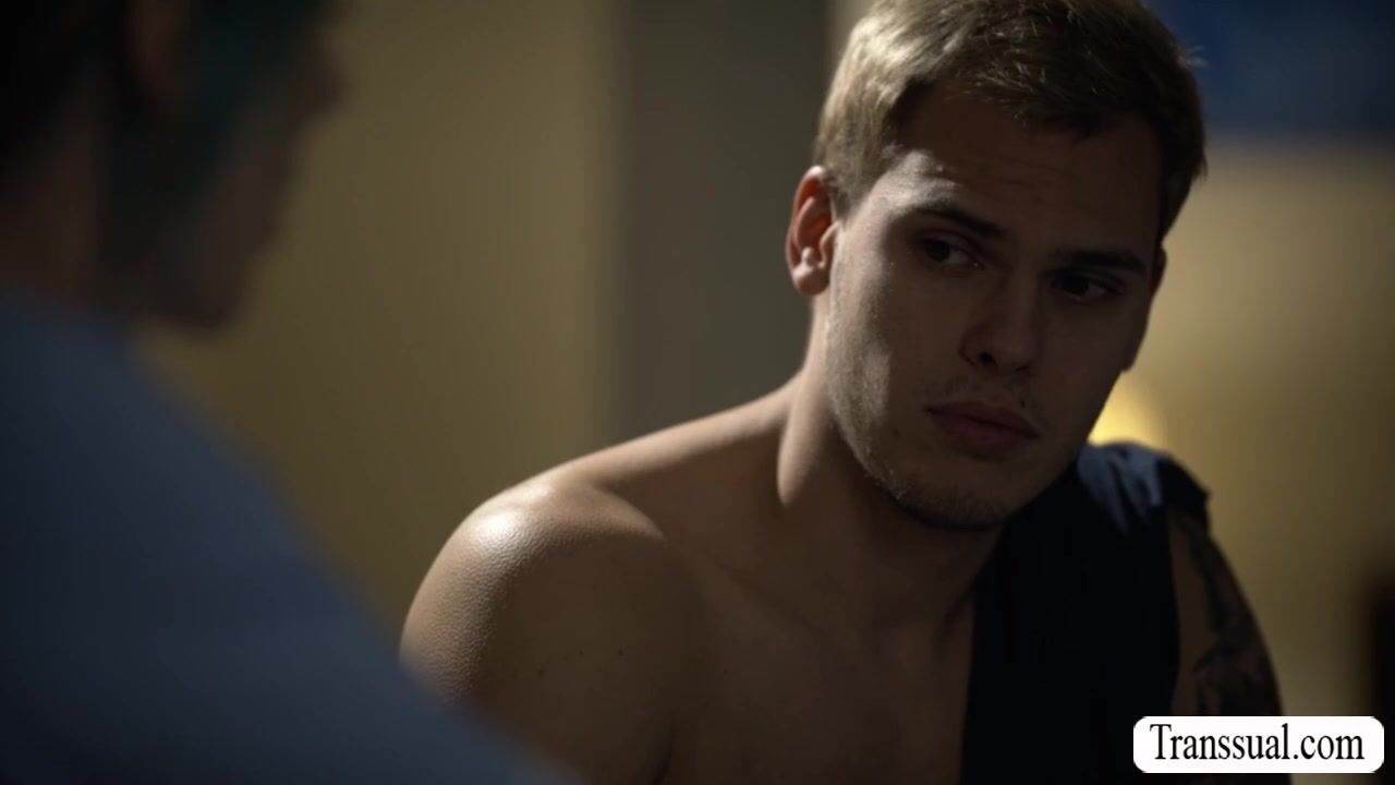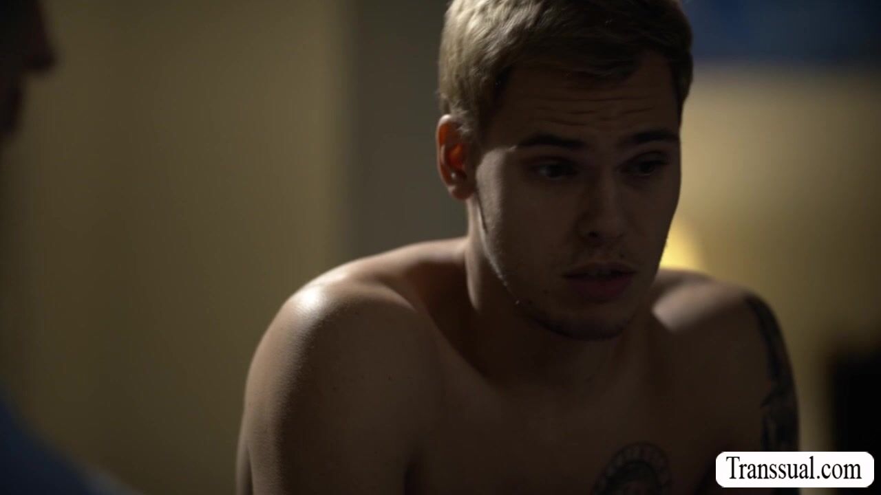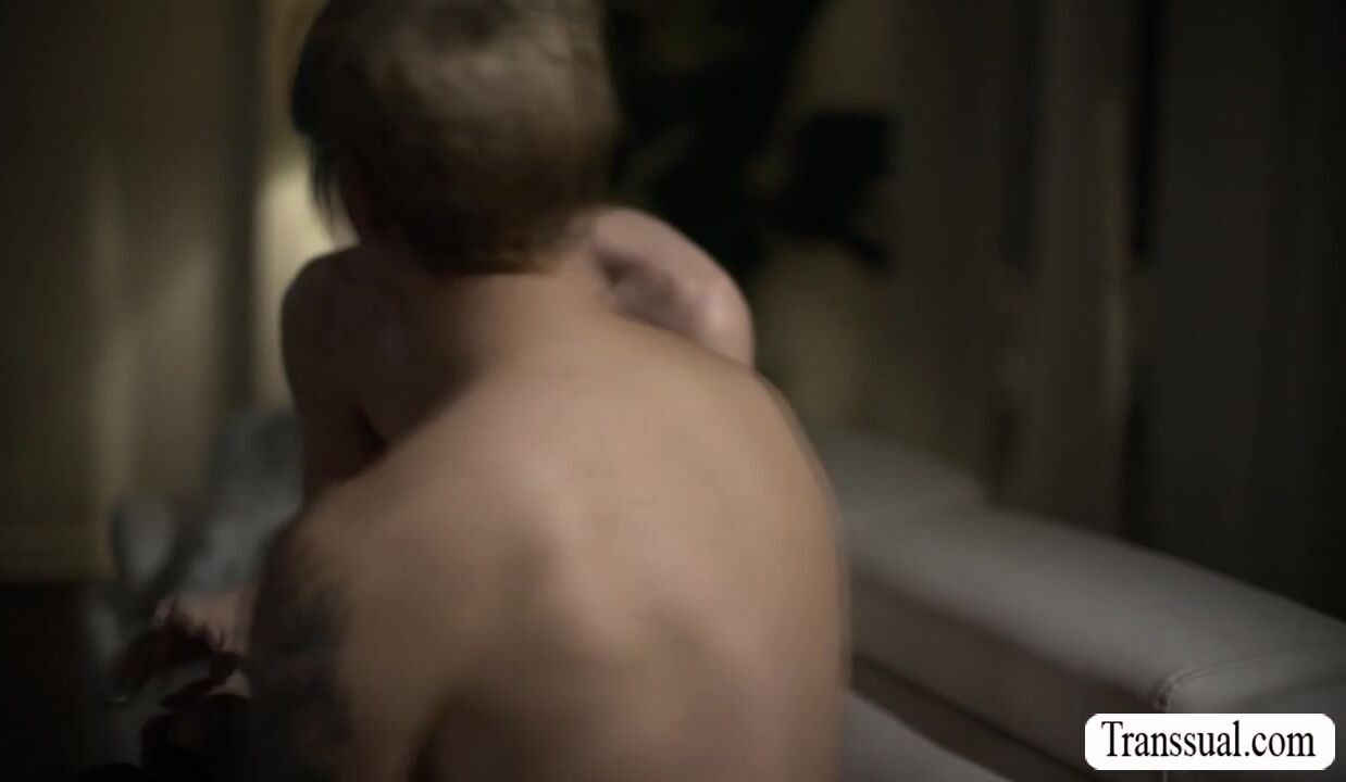 Busty TS stepmom and her stepson are on the couch talking.After that,they get horny and start kissing each other.Next is,she throats stepsons big dick passionately and in return,her stepson bareback fucks her tight wet ass so deep and hard.