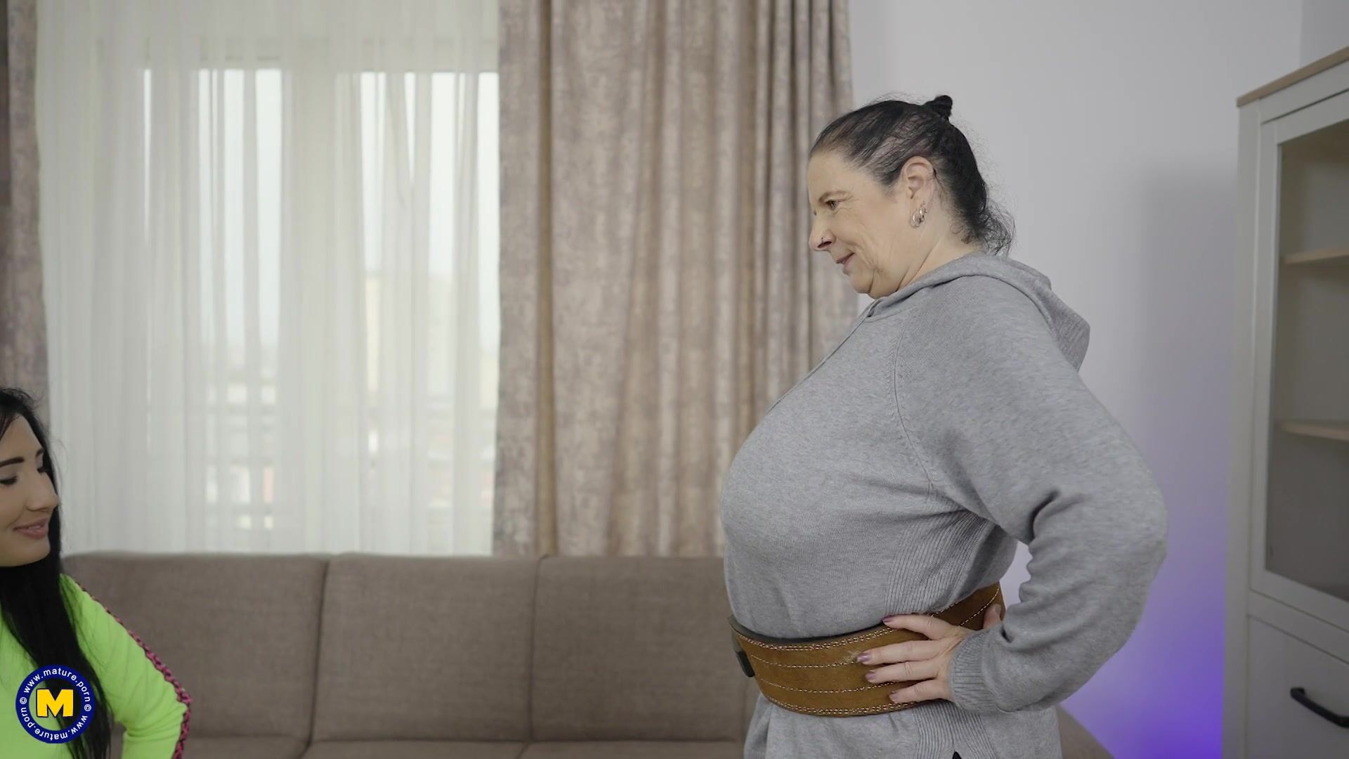 Old BBW And Young Brunette Lesbians Work Out