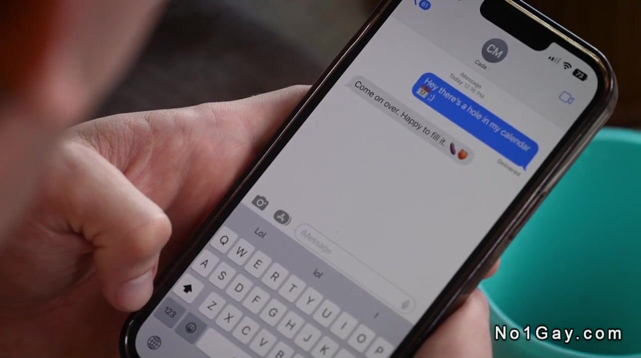 Trevor Brooks on Cheat Day slip away from loving boyfriend and get big dick from hunk Cade Maddox in his mouth then up the ass from behind bent over sofa