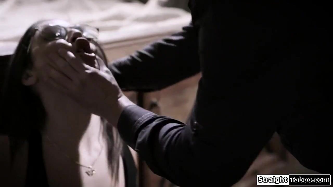 Petite teen girl kisses an older man she just met and he slaps her.He deepthroat facefucks her as the babe gags on his big cock.The big tits babe is spanked and he fucks her hairy pussy while choking her.The busty brunette is fucked rough from behind