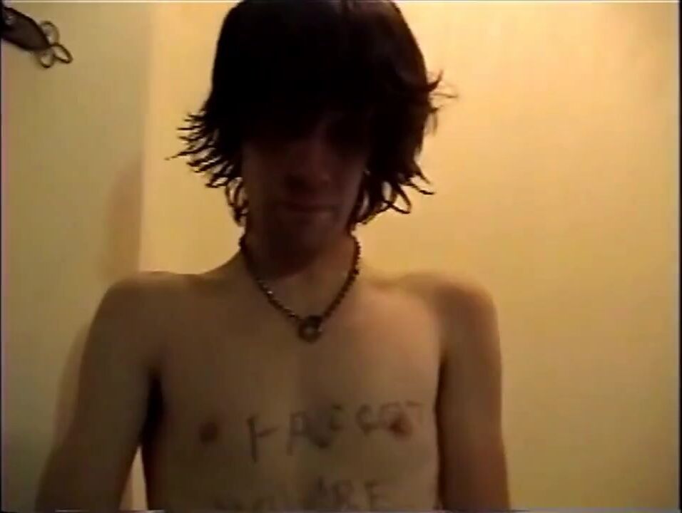Description: Jeremiah is a dirty cock sucker and is made to strip, stroke naked outside on his patio, have whore and other words written on him, and made to cum on his face.