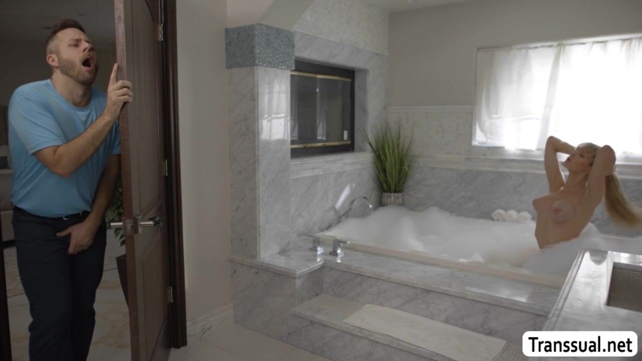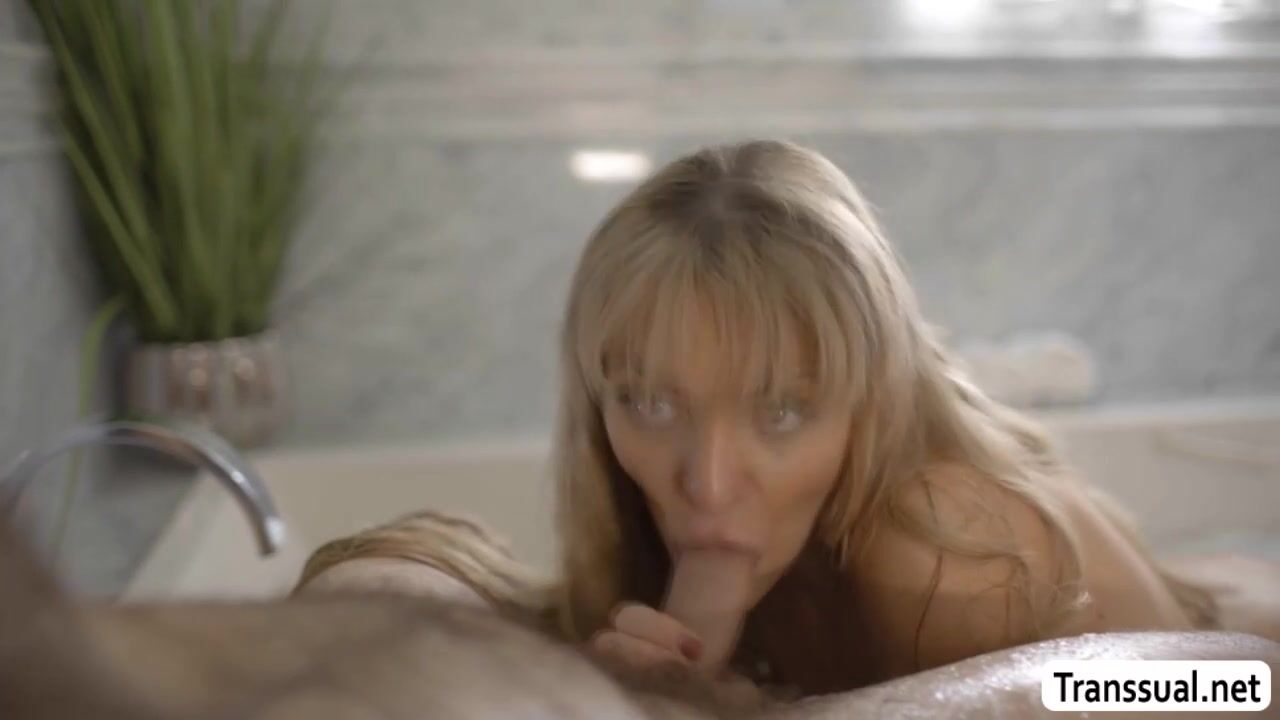 Wet TS babe Tori Easton is working out and she meets the friend of her husband.After that,she starts seducing him and lets him follow her in the bathroom.They start kissing each other and she then throats his dick and rides it after.
