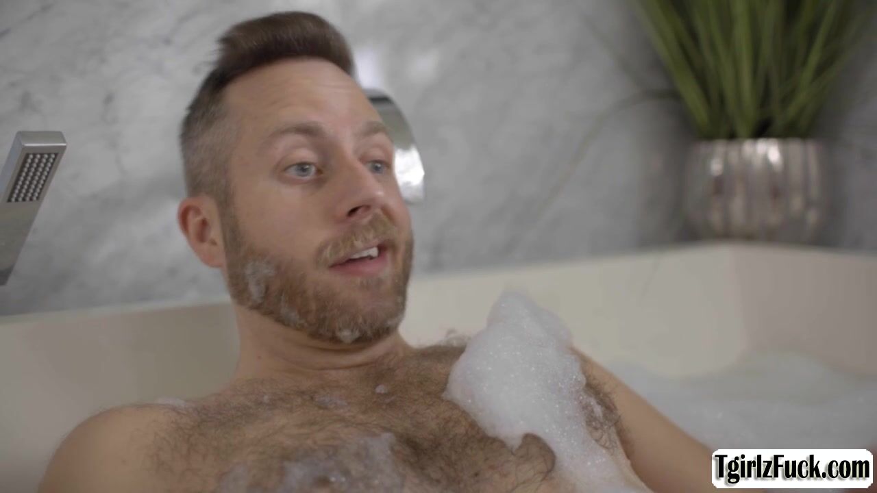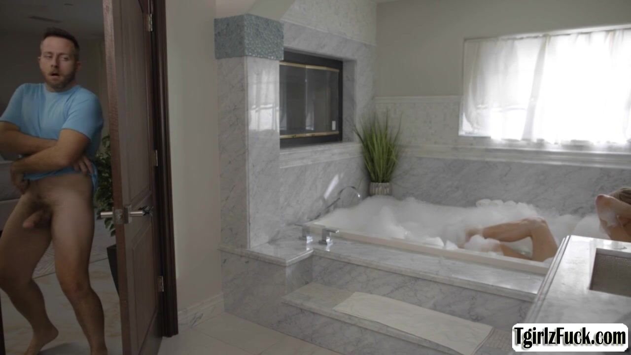 Busty and blonde transgender Tori bareback anal fuck in the Jacuzzi