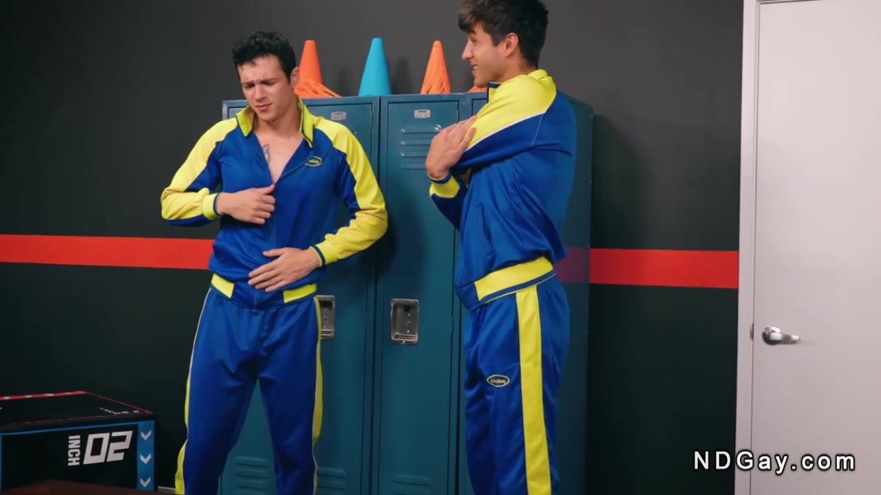 Black coach Brock Johnsyn caught gay teammates Jayden Marcos and Elliot Finn in blowjob action in his locker room then they joined him in anal threesome interracial gang bang