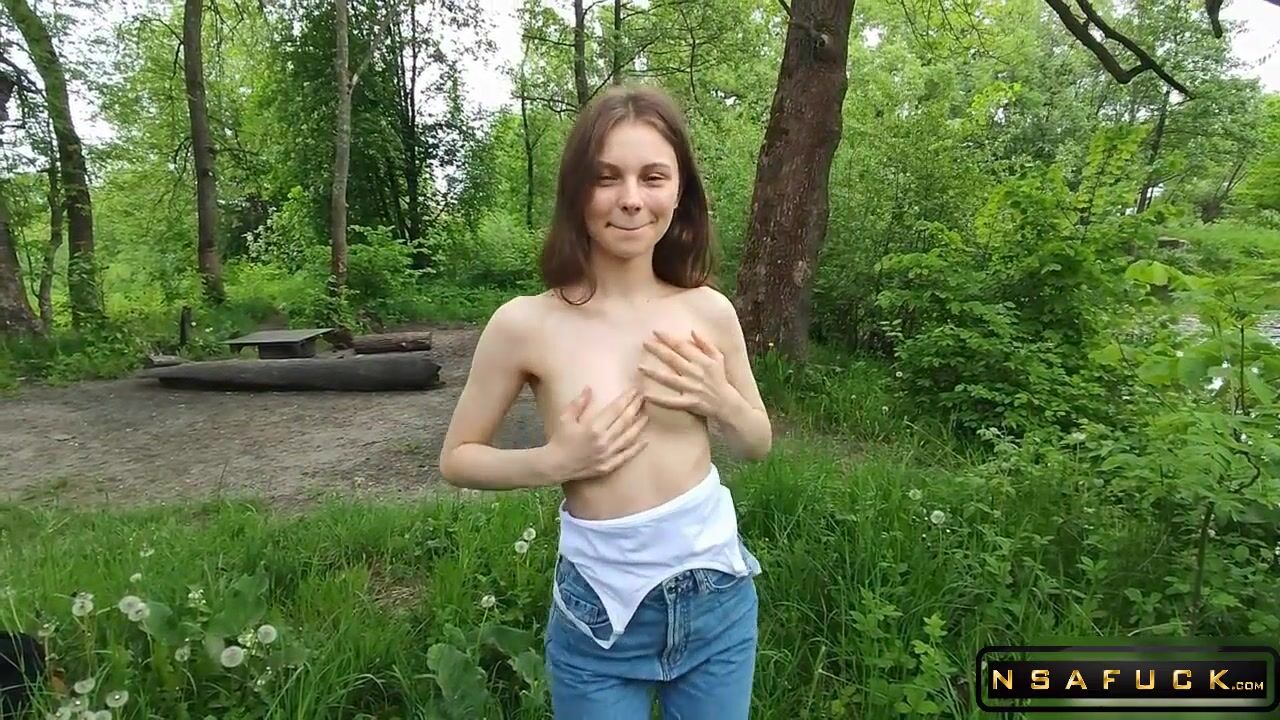 Cute Stepsister Teases with her Boobs Outdoor I had to Fuck her right on the Rock