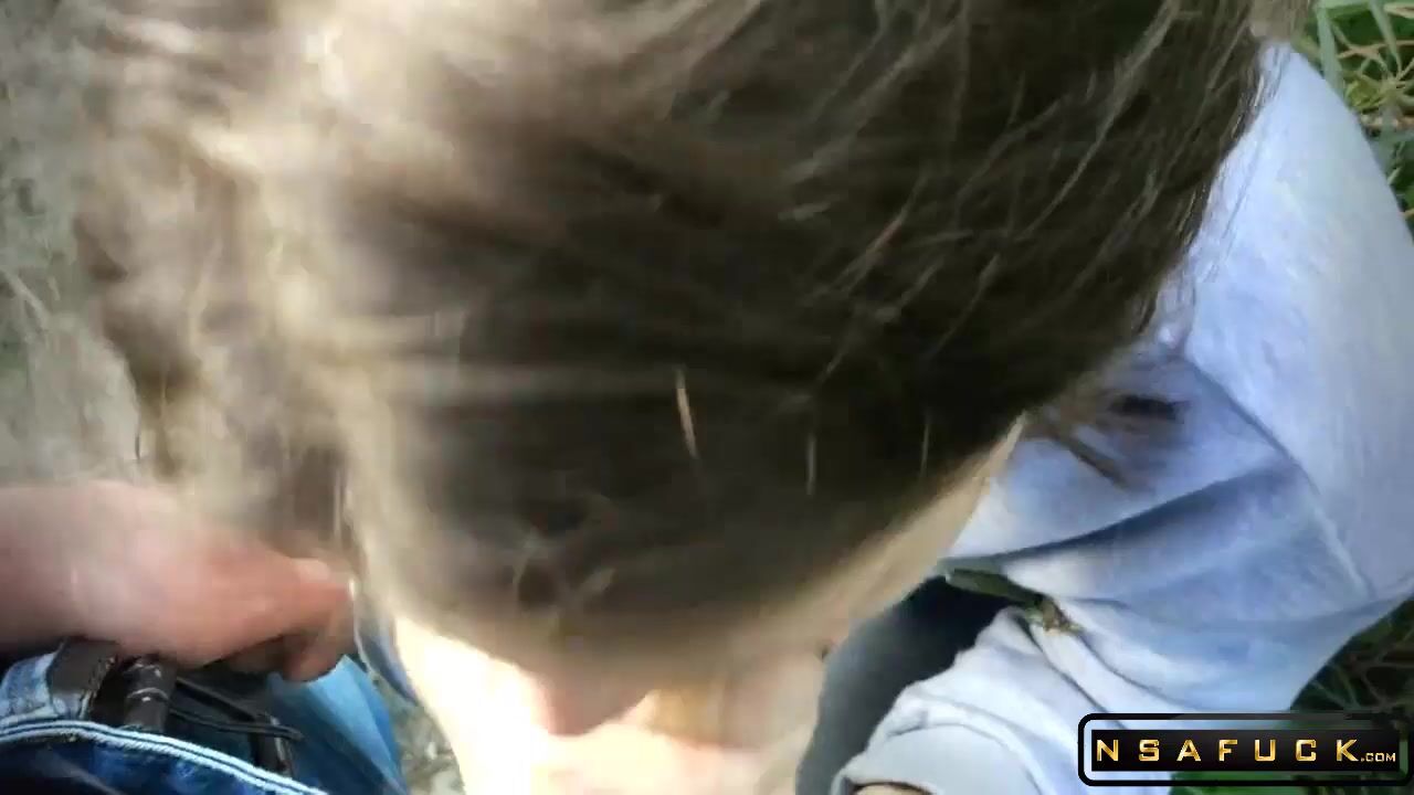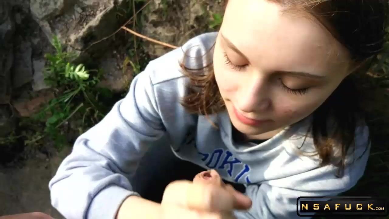 Russian Slut make Blowjob Outdoor after University