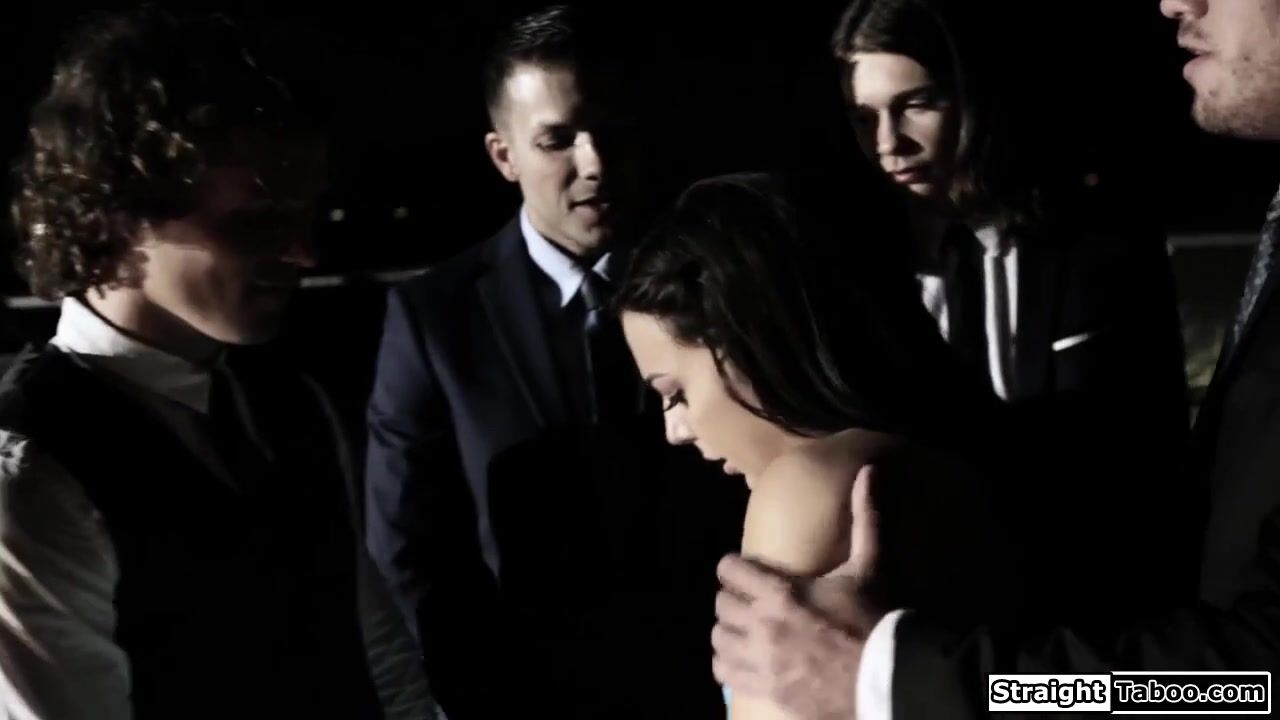 Teen student is tricked by bf to let him and his friends gangbang her on prom night.The 4 guys dominate the petite brunette and deepthroat facefuck her as blowbanged.The small tits submissive babe is fucked outdoor as she masturbates her shaved pussy