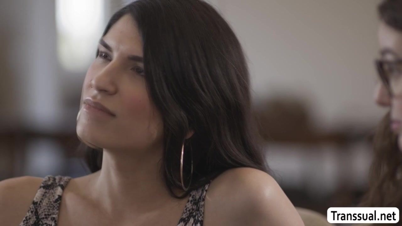 Shy teen goes to the house of bestfriends TS girlfriend to meet her.After that,they start kissing each other and she lets her lick her tight pussy.In return,she sucks the shecock of TS and lets her fuck her wet pussy so hard.