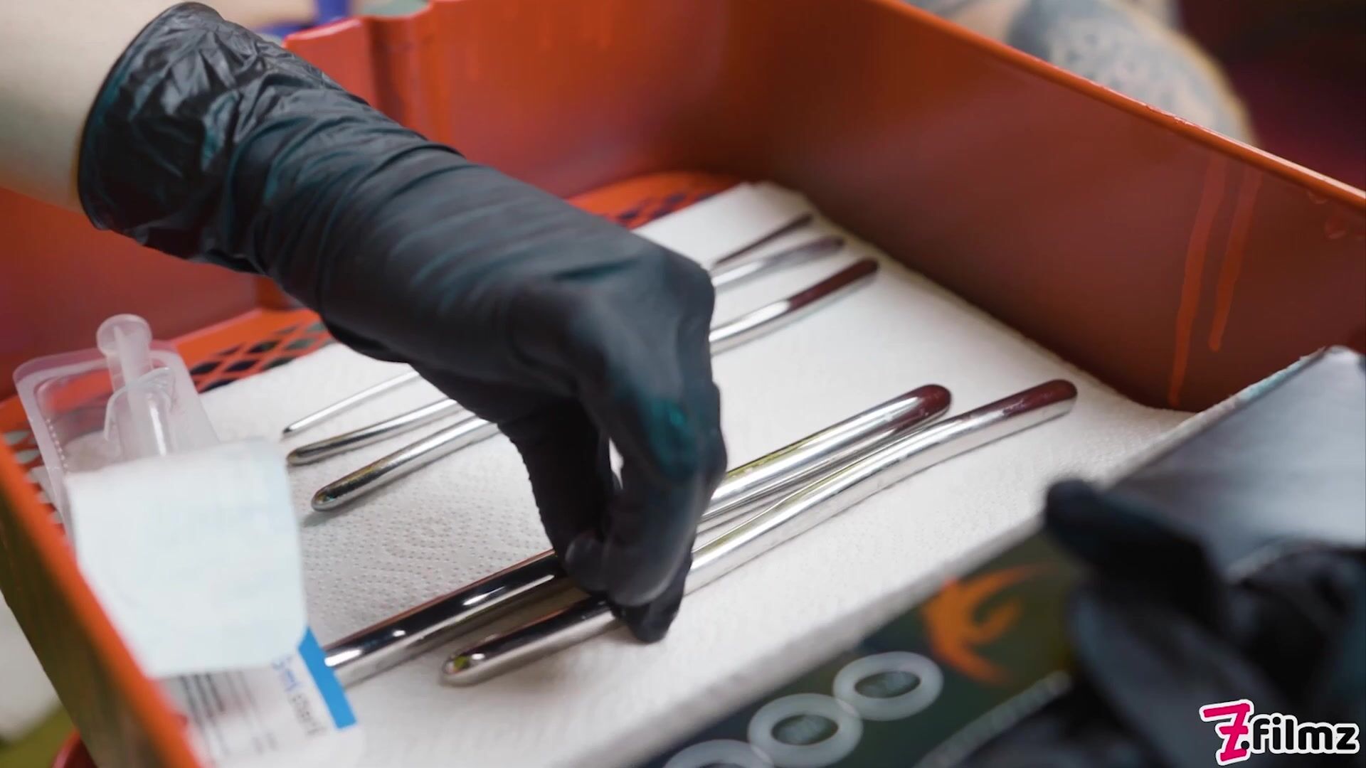 Nikolaz Zpageti puts on a latex skirt and gets dominated and fucked from two professional dominas Anuskatzz and Miss Flora!