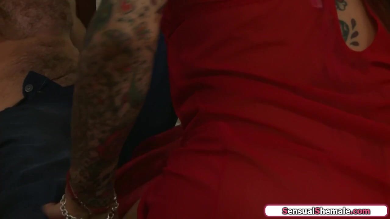 Guy finds out that latina TS Foxxy has been cheating on him and they have makeup sex.They kiss and the tattooed tgirl deepthroats his big cock.The big tits shemale receives a bj and the brunette tranny gets anal fucked as the busty ts rides his dick