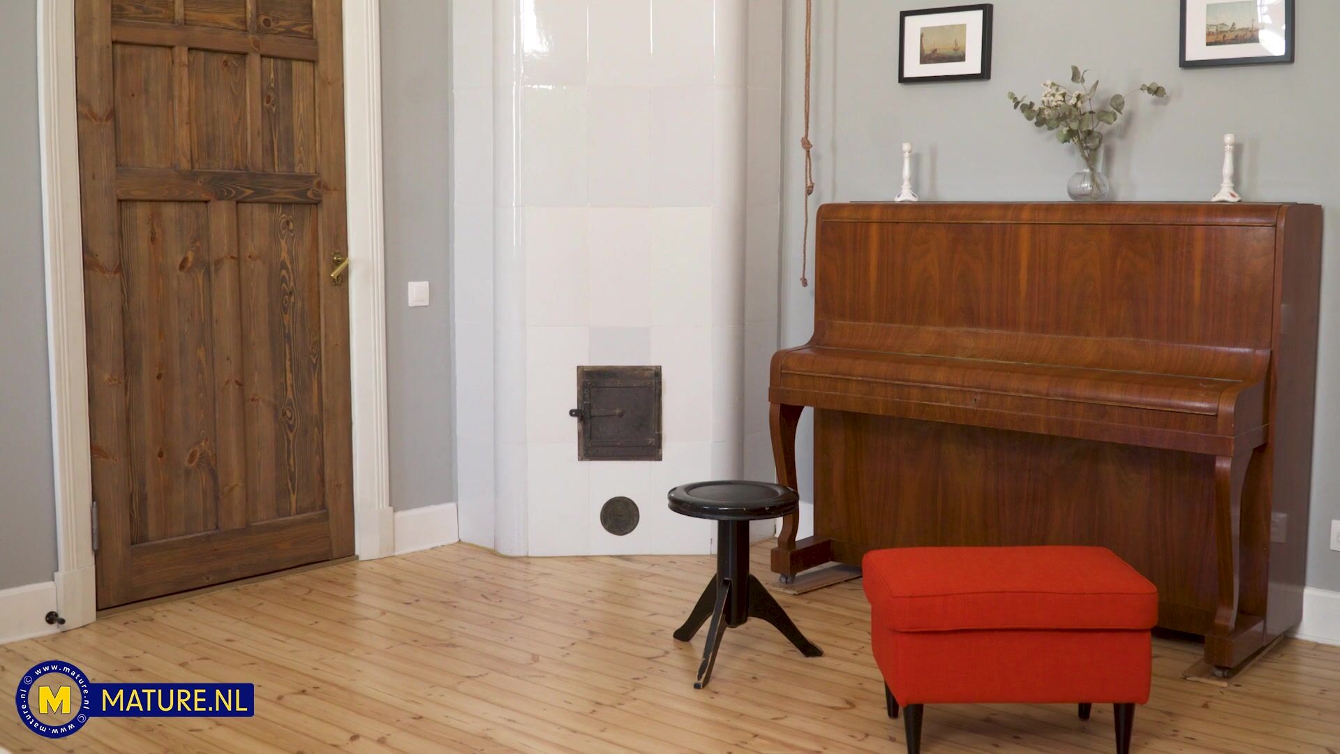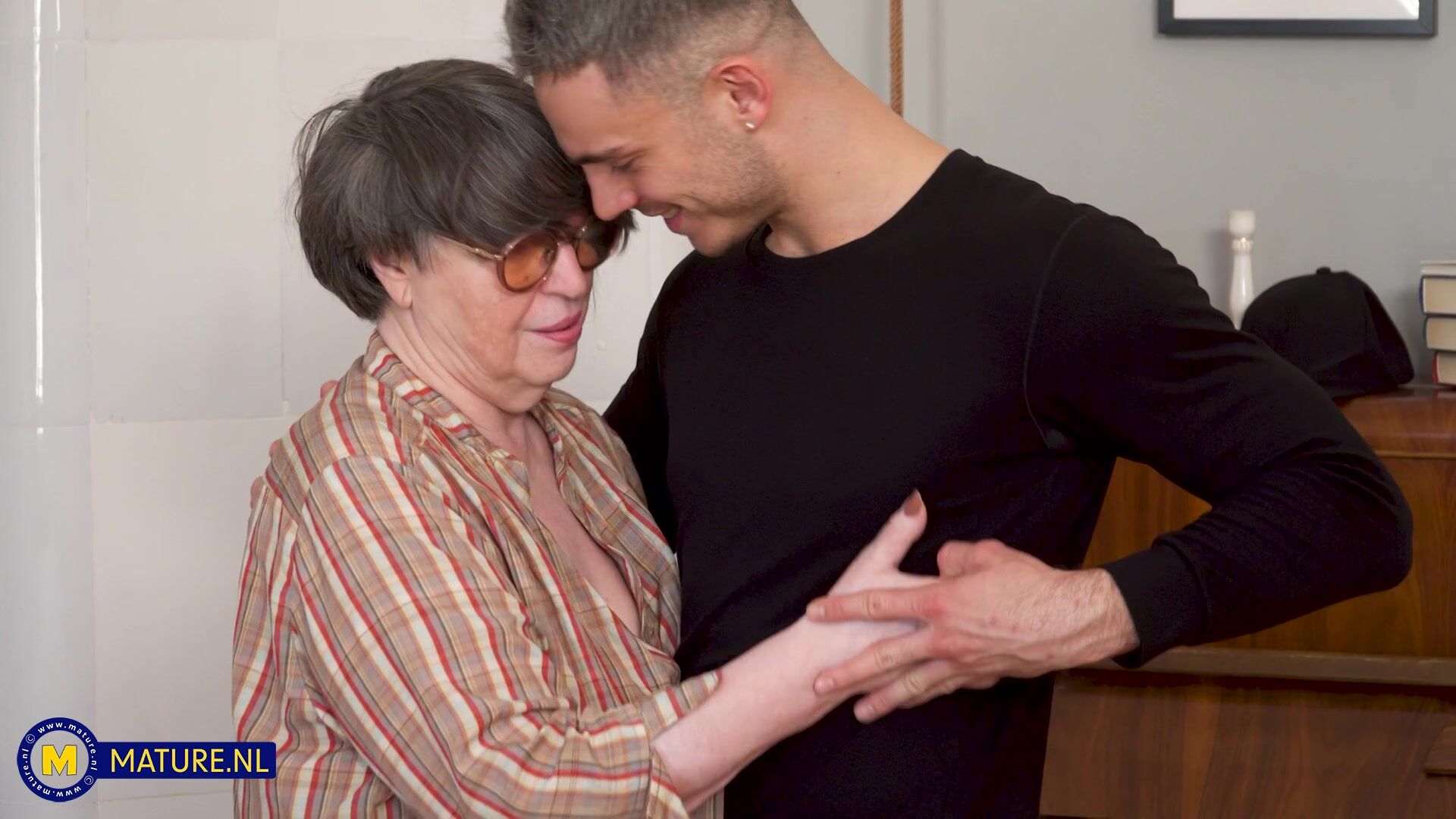 Sharon Amore (76), Willy Regal (29) - Sharon Amore is a horny grandma who gets fucked by her toyboy student at home., Big ass, Blowjob, Cum, Hairy, Hardcore, Old