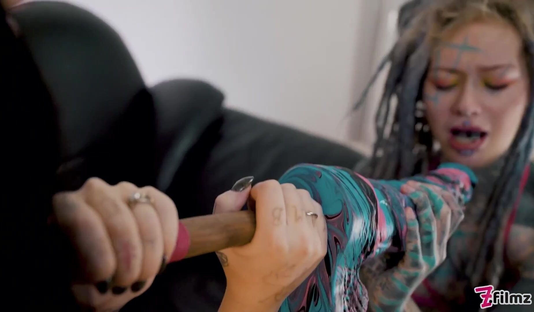 Goth Charlotte fucks Anuskatzz ANAL together with her dirty talk and being all cute and leading her to ANAL orgasm with BIG TOYS!