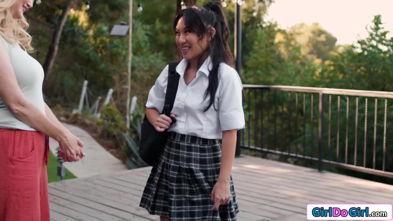 My busty stepmommy stared at my panties and I made my move.I could use an orgasm and I sucked on her big tits.The milf spread her legs for her petite asian stepdaughter and the teen was eager to taste her snatch before getting eaten out herself