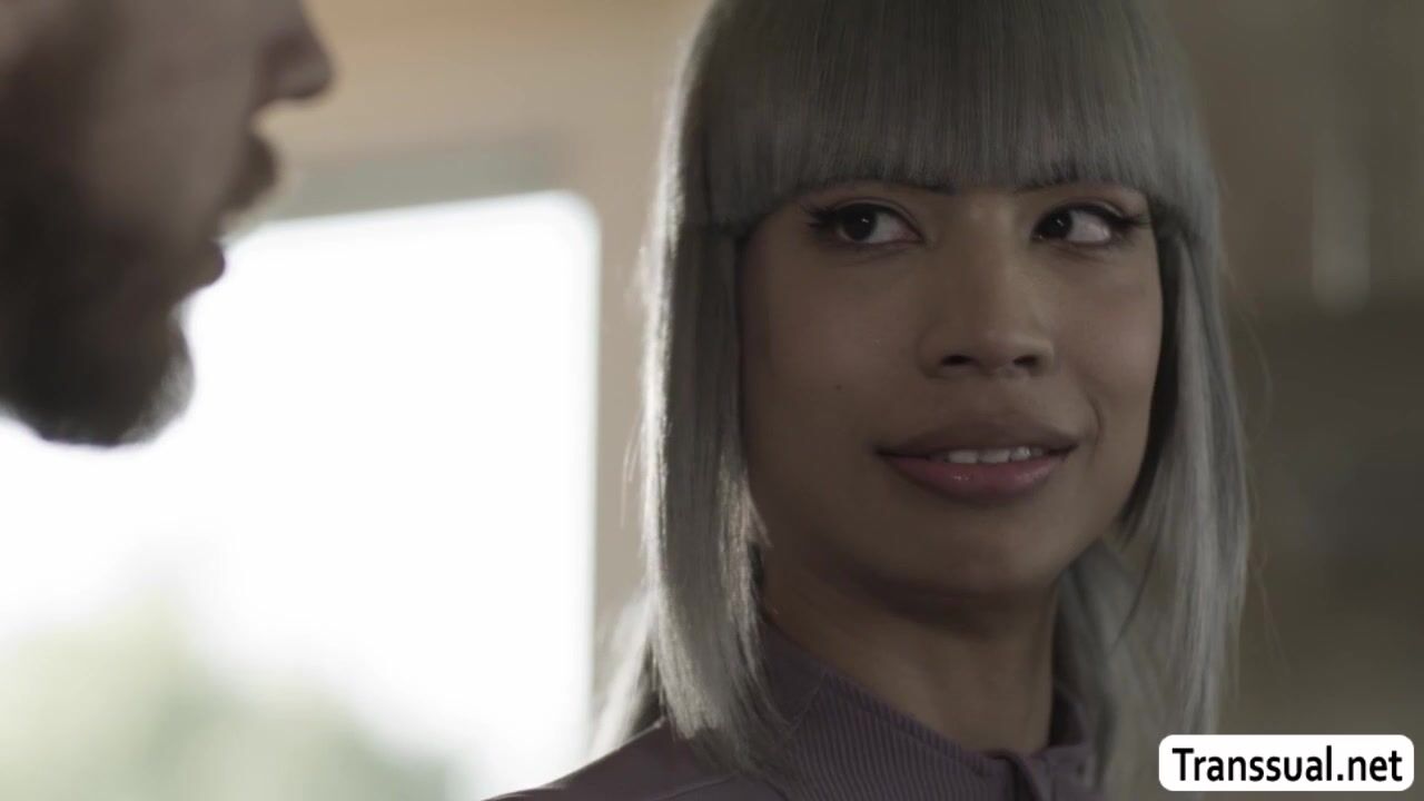 Hunk dude visits the house of hes bestfriend and he meets his TS girlfriend.After that,they get horny and start kissing in the kitchen.Next is,he sucks her hard shecock passionately and bareback fucks her wet ass so hard.