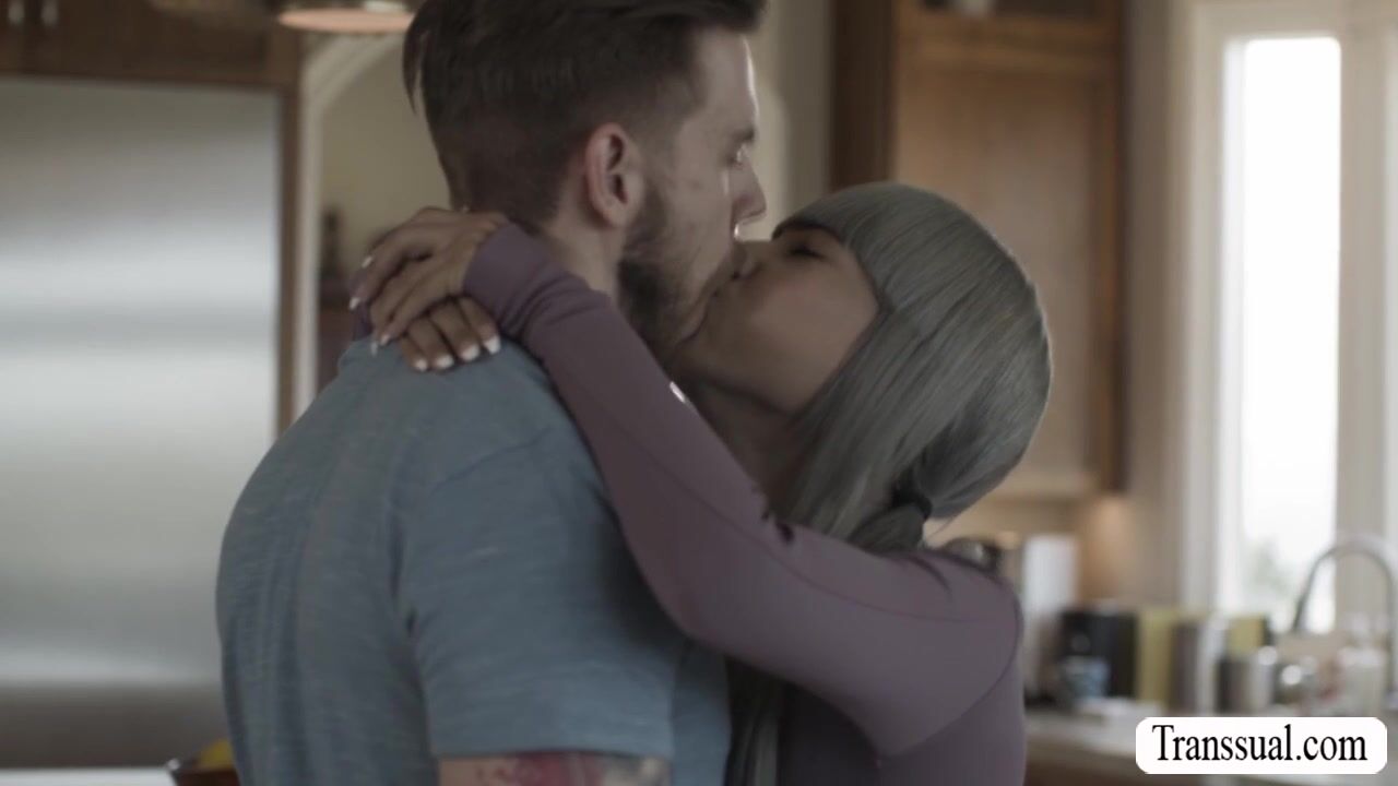 Handsome dude visits the house of hes bestfriend and he meets his TS girlfriend.After that,they get horny and start kissing in the kitchen.Next is,he sucks her hard shecock passionately and bareback fucks her wet ass so hard.