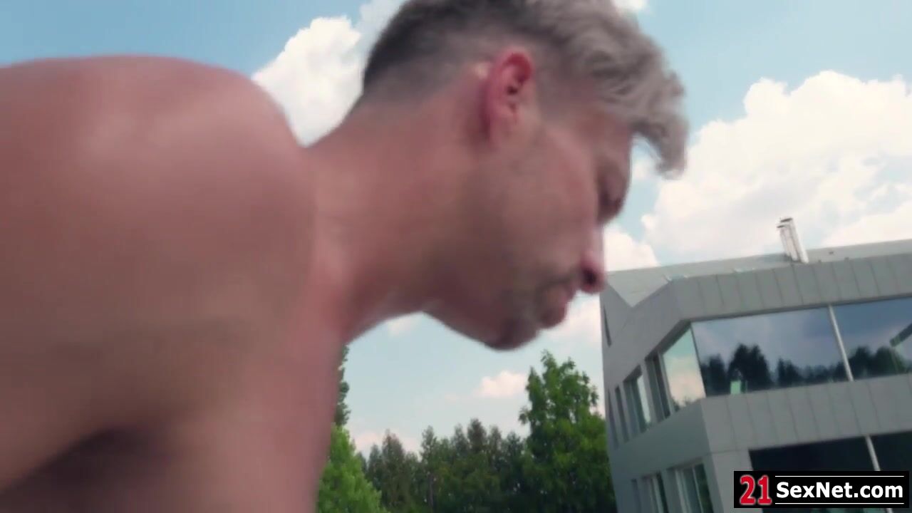 Petite french babe Cassie Del Isla is stripping her bikini then lies down on the bench naked while her guy Lutro is caressing her small tits and oiling her up.After a sloppy blowjob,The guy starts licking her shaved pussy then fucks her tight ass.