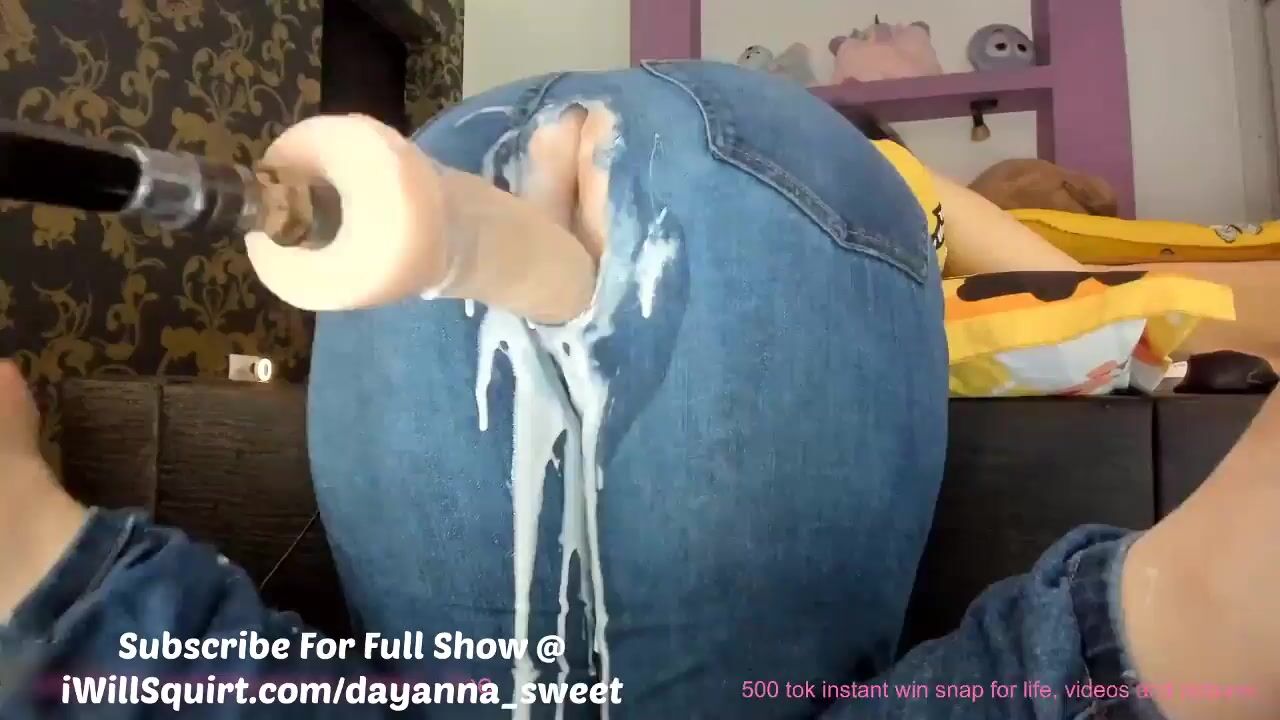 Machine Dildo Makes PAWG Big Booty MILF Mom Creamy Squirt All Over Her Jeans Subscribe On iWillSquirt For Daily Squirt Shows In 4k Quality