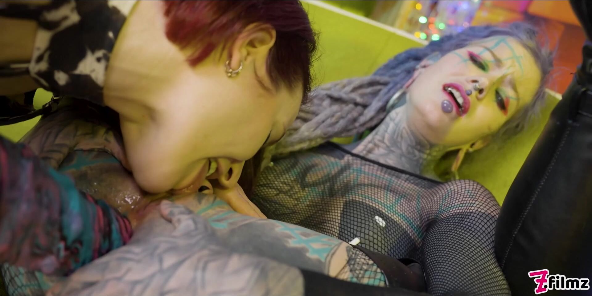 The two FEMDOM girls, Anuskatzz and Miss Flora meet in their Overknee High Heels in front of our big DILDO WALL!