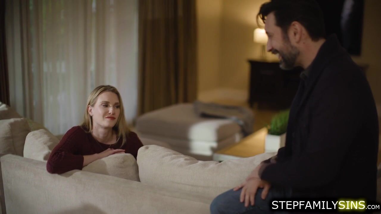 Blonde babe gets bored and horny so she goes to her stepcousins room and have fun.Shes kissing the older guy then starts stripping.The dude removes her panties,eats her clit while fingering.She is deepthroating him first before they fuck on the bed